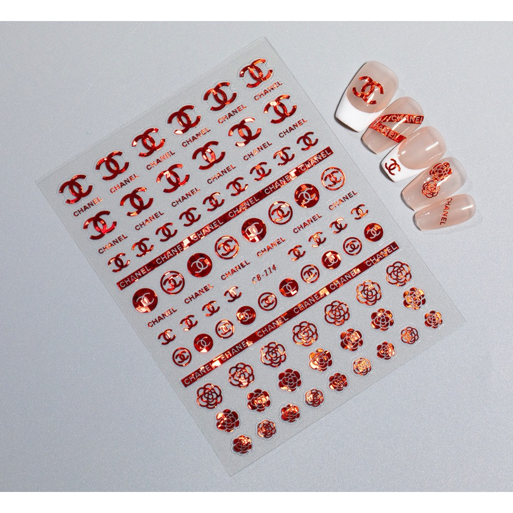 Stiker kuku nailart text chan*el Di*or LV louis sticker kuku merah