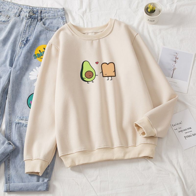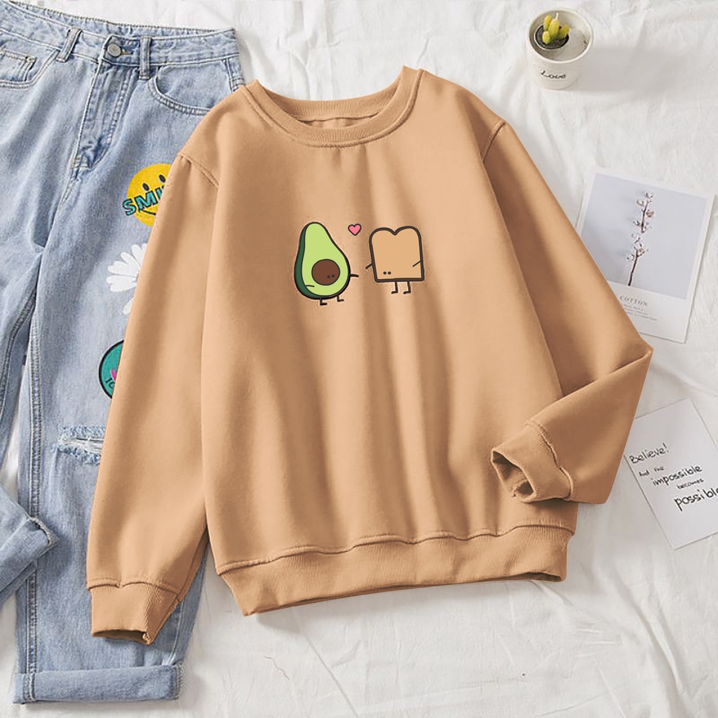 Sweater Crewneck Sweatshirt Casual Avocado - Baju wanita dan Pria - Bahan Fleece - Allsize