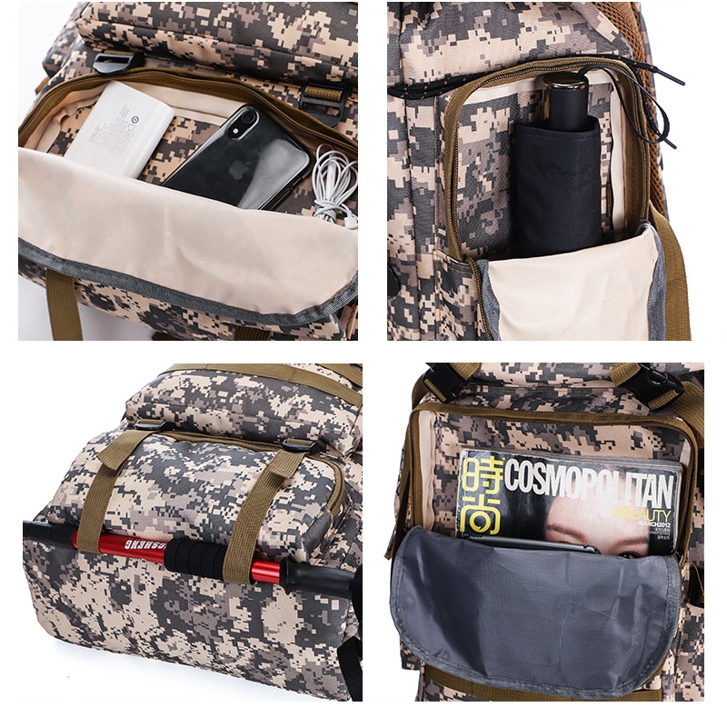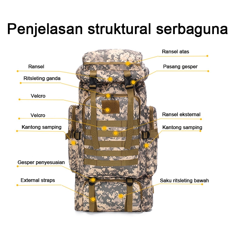Ransel Kamuflase Luar Ruangan 80L Ruang Besar Ransel Hiking Perjalanan Pria Tahan Air
