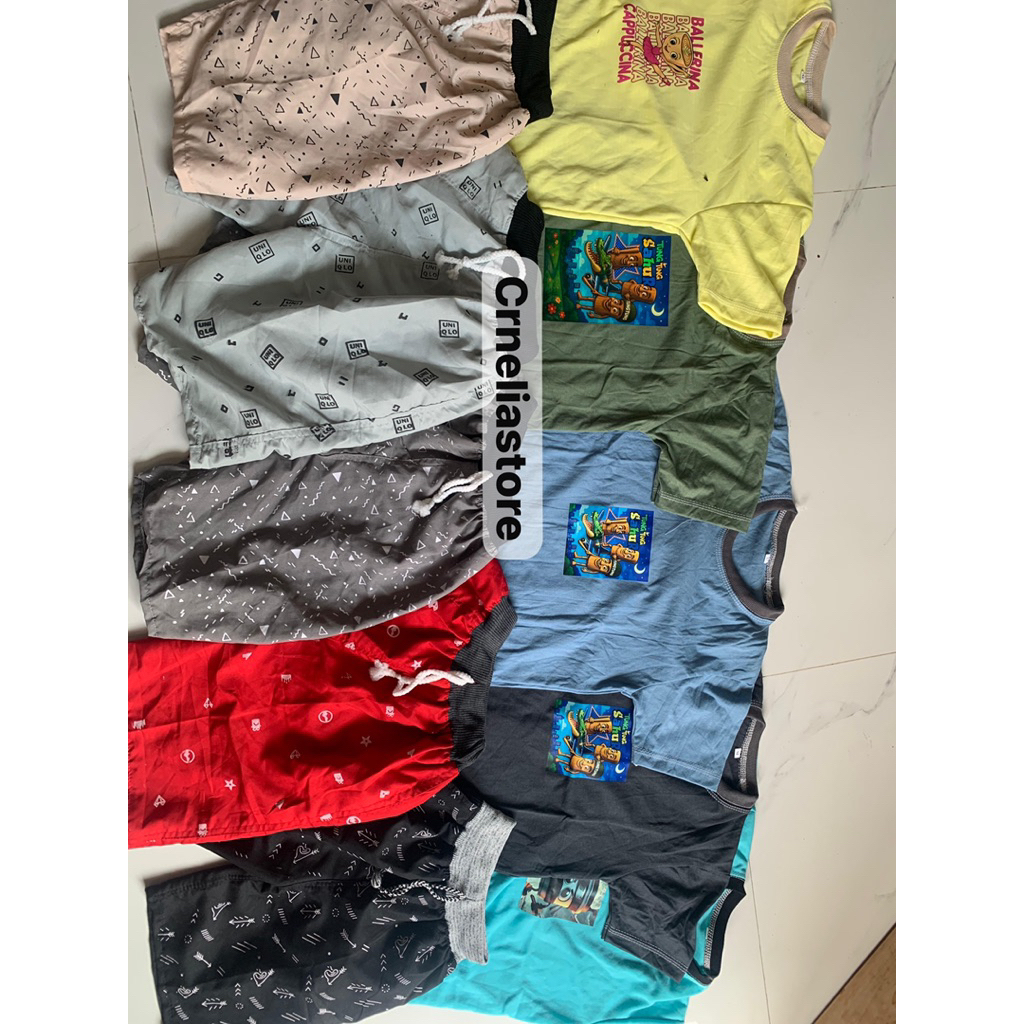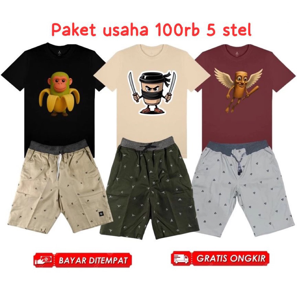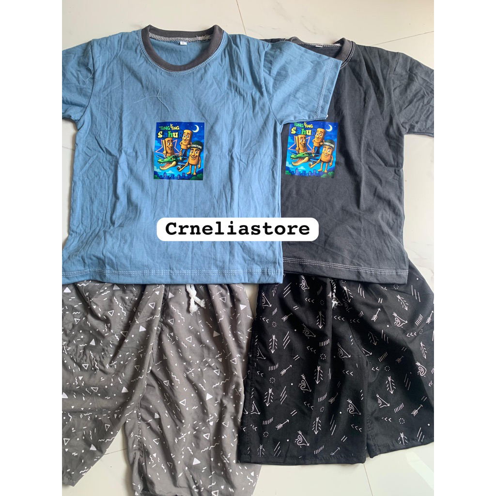 [PAKET USAHA] Promo 100rb Dapat 5 Stelan Anak Anomali tung tung sahur Dapat 5 Kaos 2 Celana Pendek Motif