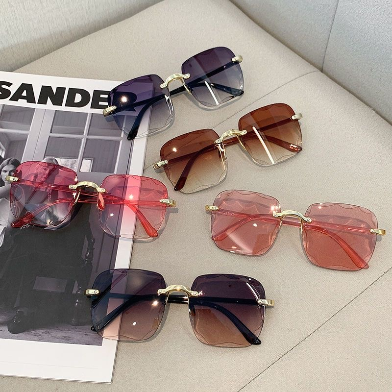 ALOY GROSIR PL-MX005 Kacamata Hitam Wanita Fashion Gaya Tanpa Bingkai Termurah