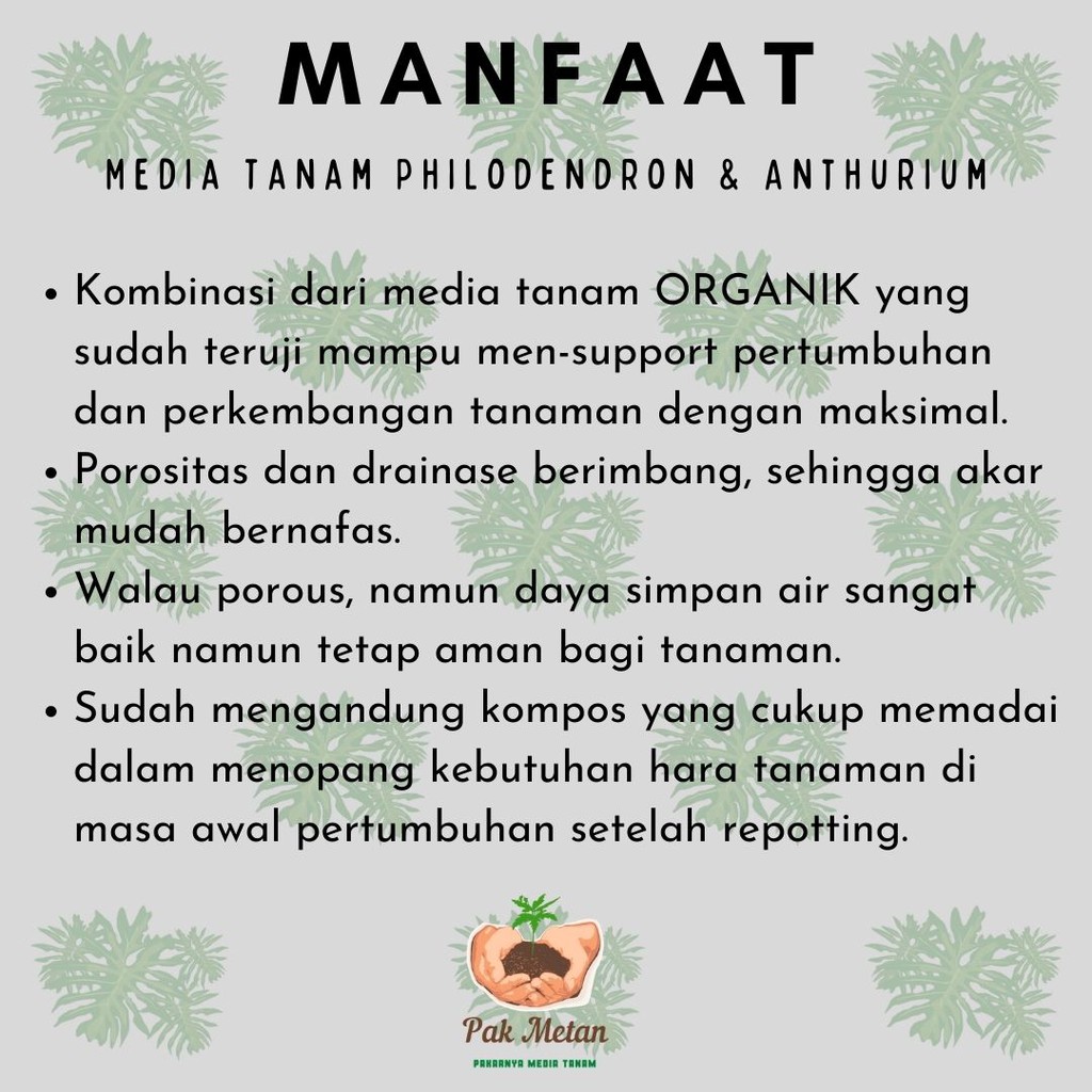 Media Tanam Philodendron, Anthurium, Monstera 4 liter Brand Pak Metan Organik Metan Siap Pakai