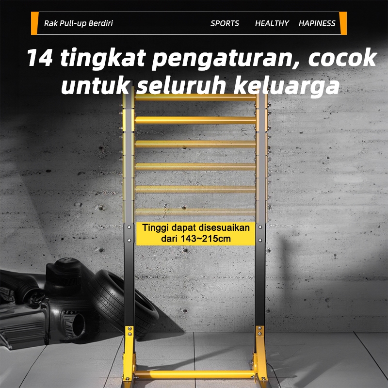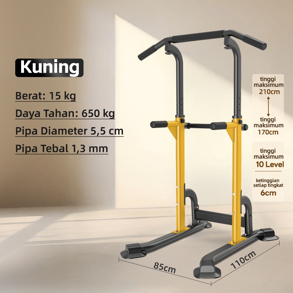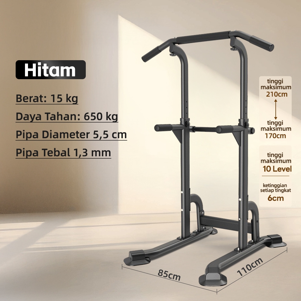 Pull Up Bar Station Alat Fitness Rumah - Adjustable Height 8-14 Level, 500kg, 8 Penyedot Kuat,