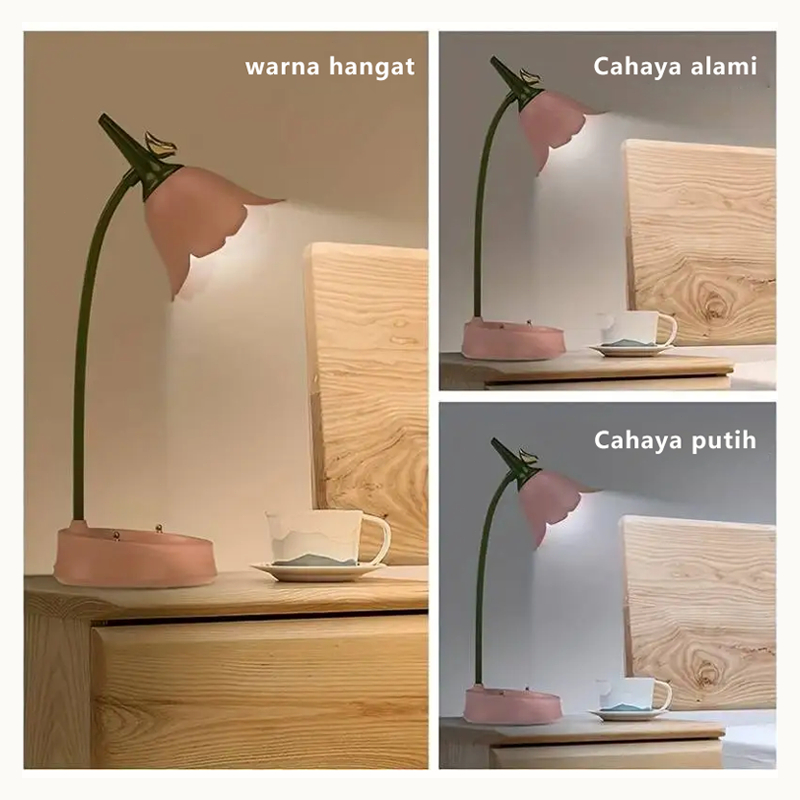 Lampu Meja LED Bunga Lampu Kamar Tidur Siswa Pencahayaan Kamar Tidur Siswa Lampu Baca Sentuh Pelindung Mata Lampu Meja Lampu Multi-fungsi