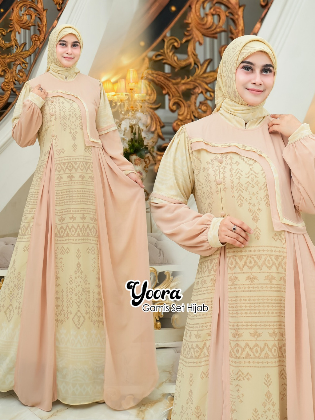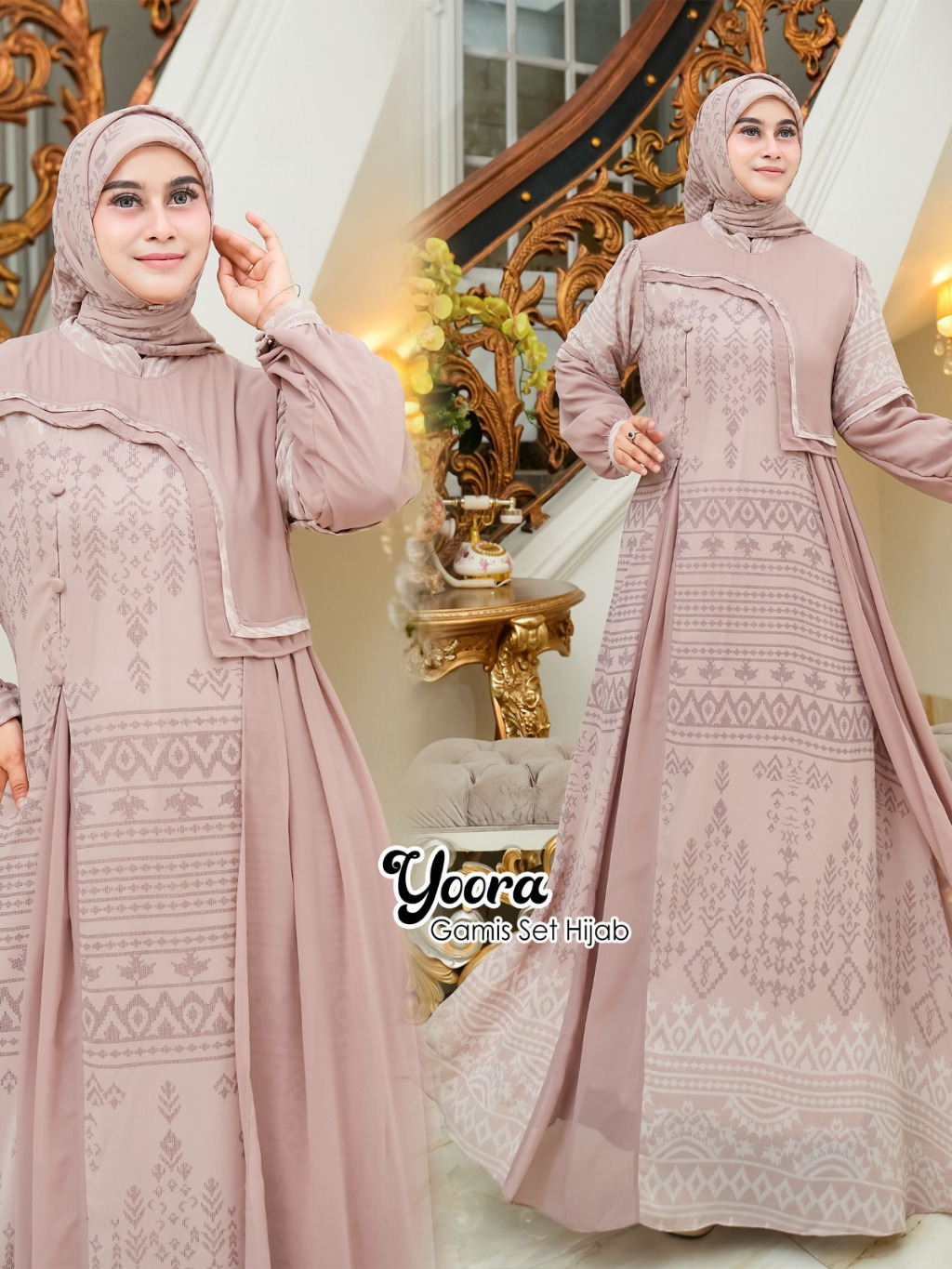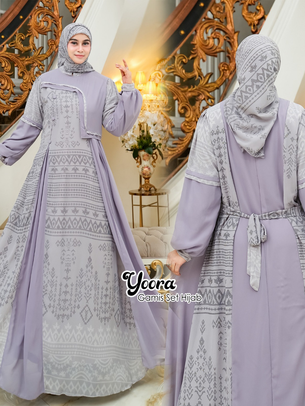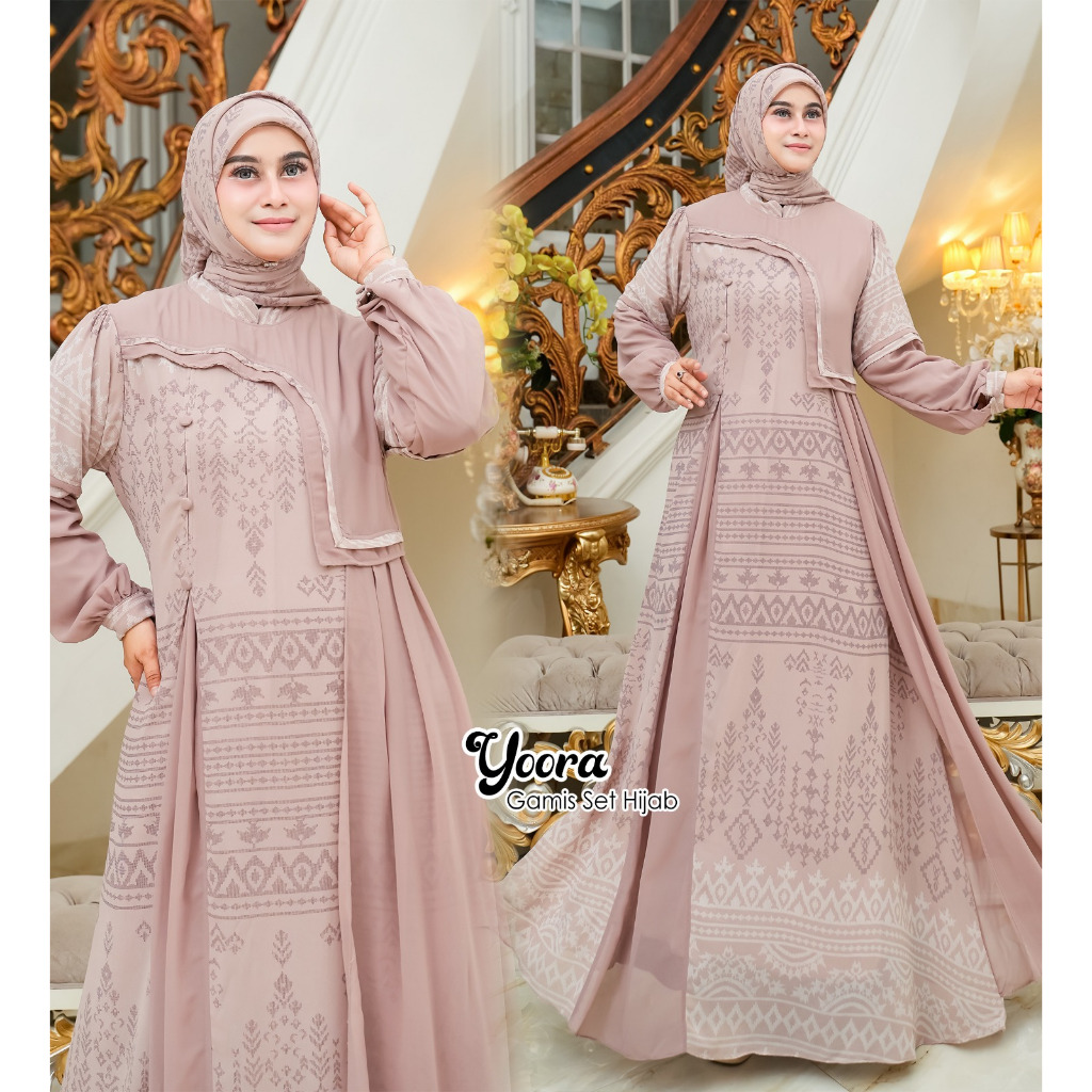 Shireen Fs - YOORA Baju Gamis Set Hijab Segi empat Ukuran Jumbo Ceruty Etnik Termurah