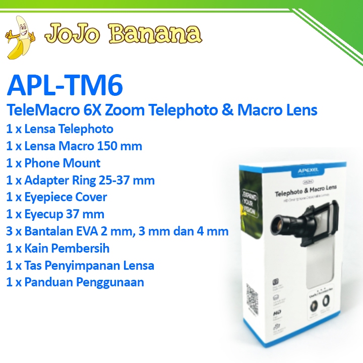 APEXEL TeleMacro 6X Zoom Telephoto & Macro Lens - APL-TM6 Lensa Tele Smartphone 2in1 Macro Lens Telephoto Zoom