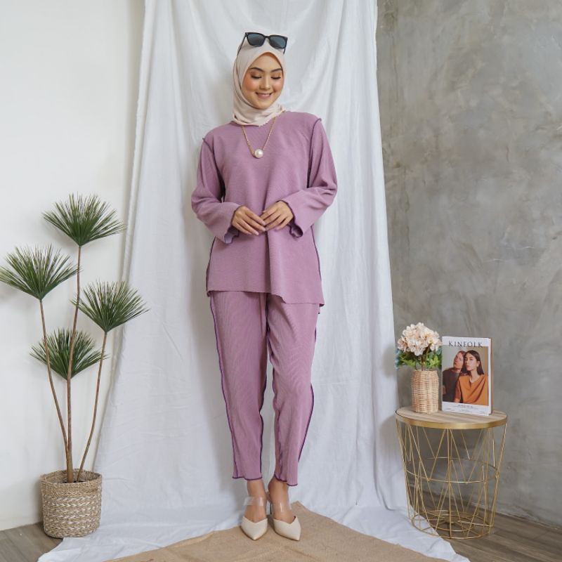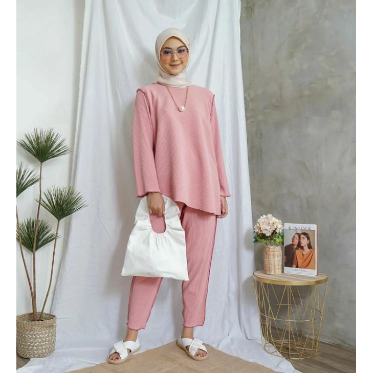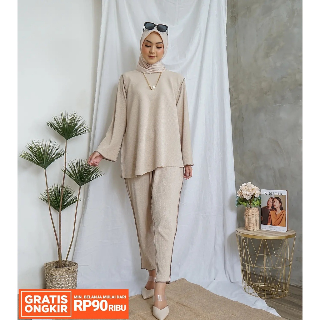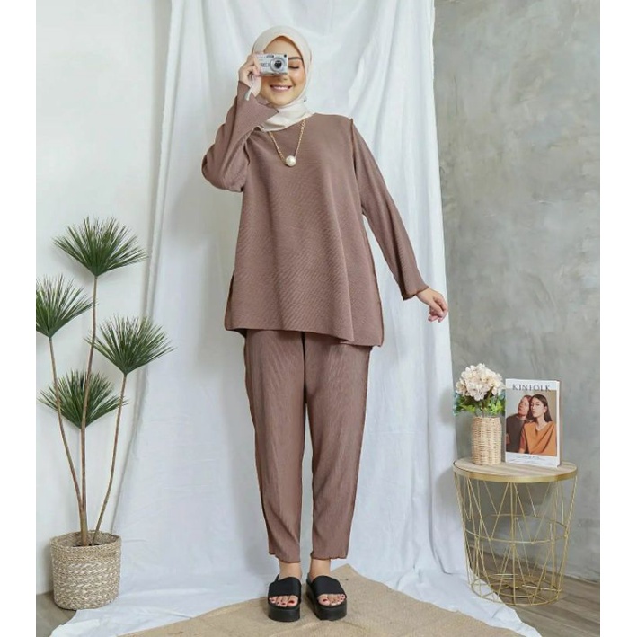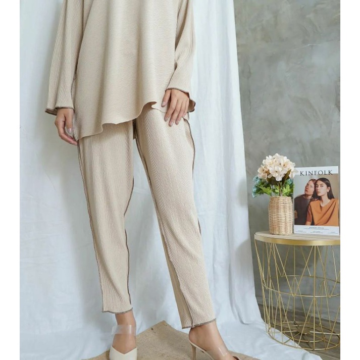 CODY Set by CB.CO | setelan atasan celana oneset wanita plisket rajut terbalik