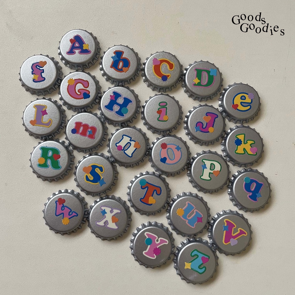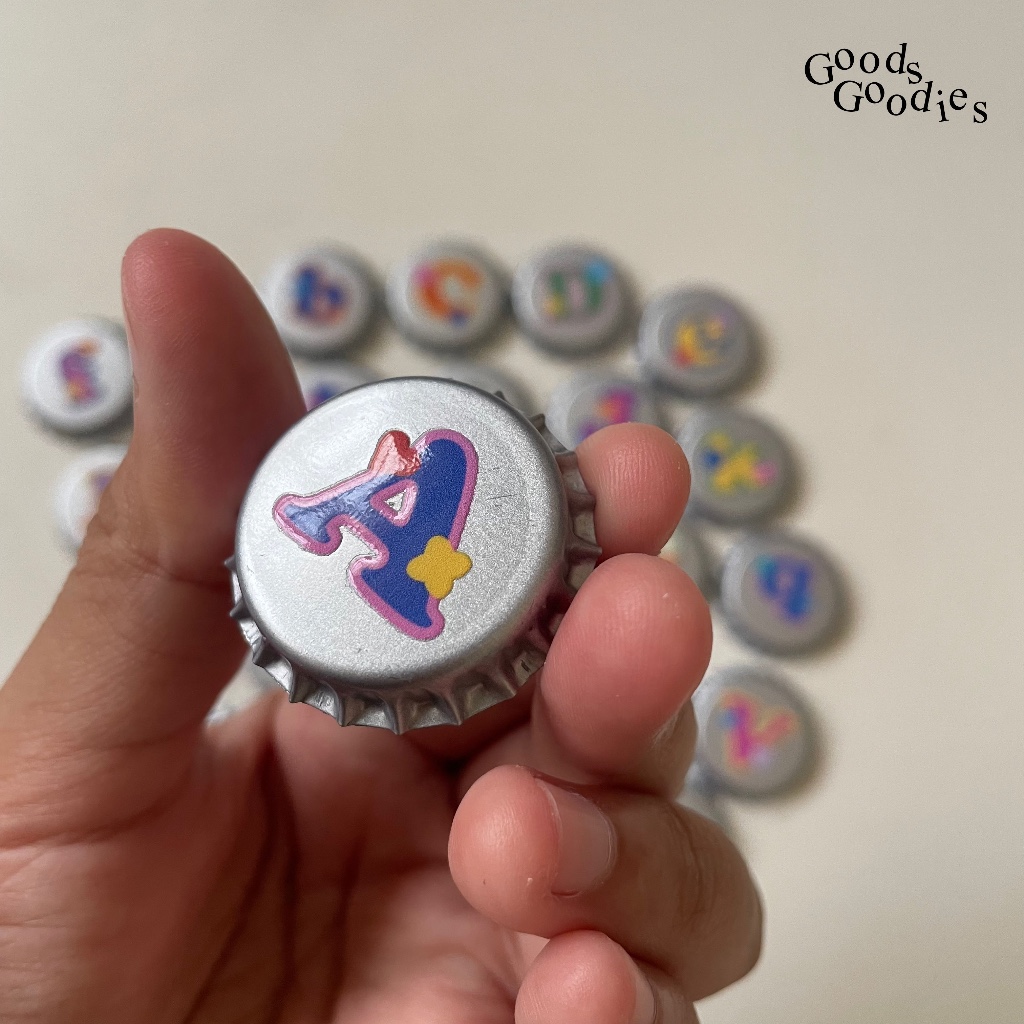 goodsgoodies Bottle Cap Pin / Pin Tutup Botol / Bottle Cap Pins Alphabet Angka / Pin Tas Lucu