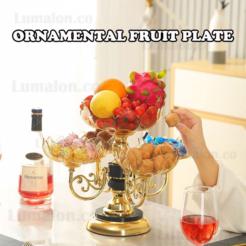Piring Hidangan Crystal Bisa Putar Piring Buah Unik Piring Kue Piring Pesta Party Mangkuk Makanan Permen Buah Di Meja Ornamental Fruit Plate Piring Buah Multi-Lapis Meja Kopi Ruang Tamu Piring Buah Hias Ornamen Piring Buah
