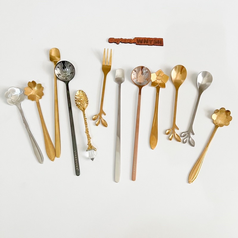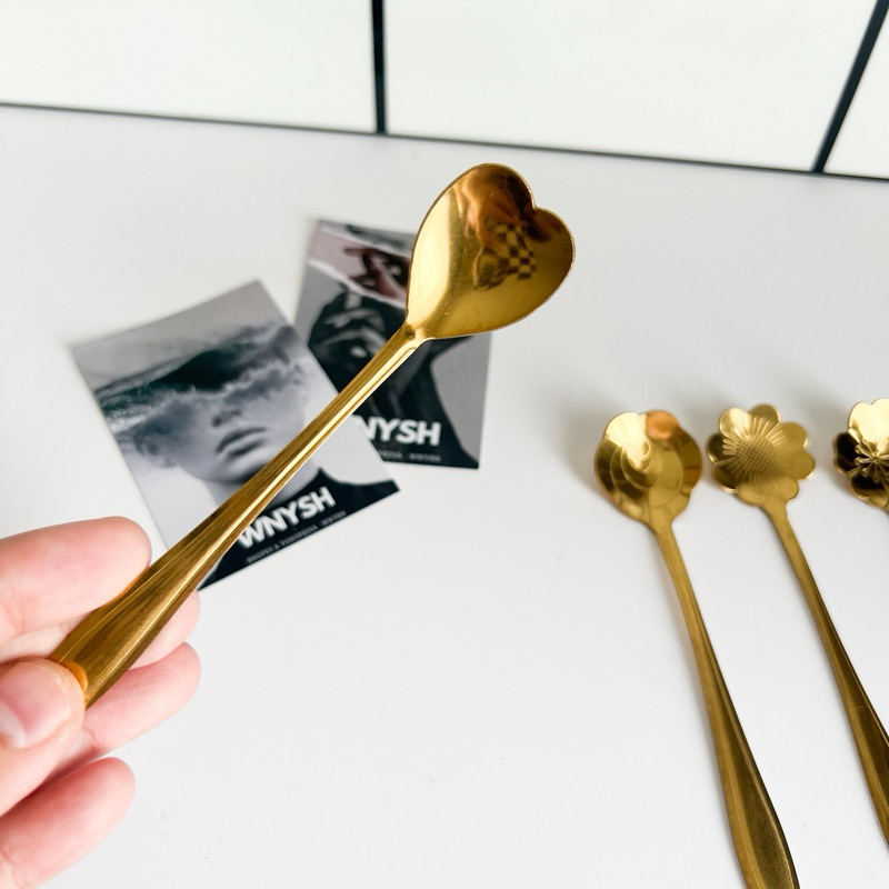 Gold tea spoon aesthetic, sendok emas, sendok aesthetic