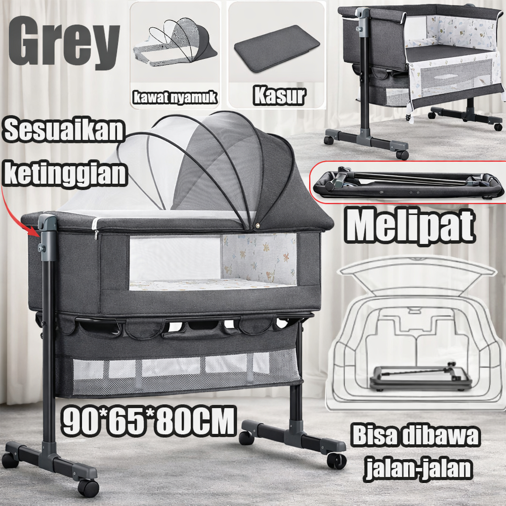 Tinggi Dapat Disesuaikan Box Bayi Tempat Tidur Bayi Portabel Travel Cot Bassinet Lipat Tempat Tidur Cosleeper Boks Bayi Cradle Katil Bayi Goyang