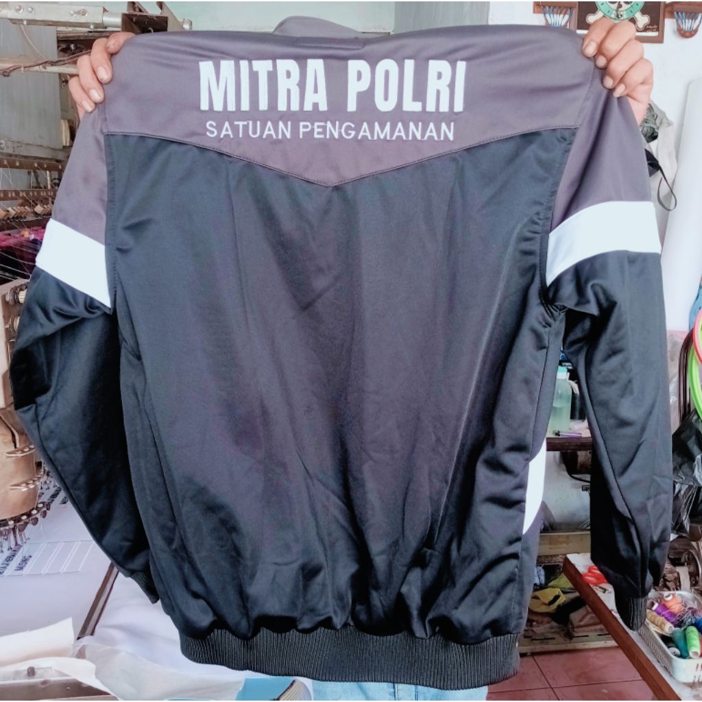 Jaket Mitra Polri Satpam Tracktop Jaket Sport Security Jaket Parasut Outdoor Full Bordir Komputer Custom