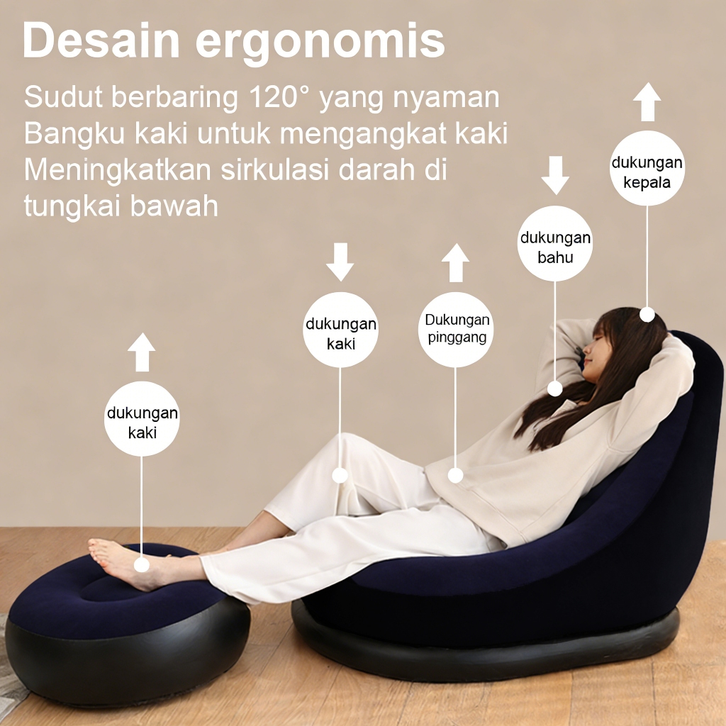 [Terbaru] Sofa Angin Minimalis + Sandaran - Bahan Bulu Nyaman, Tidak Panas & Outdoor