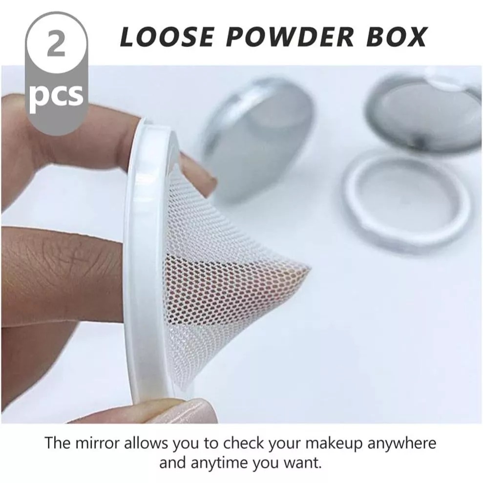 TERBARU Tempat Bedak Tabur Dengan Cermin Tempat Powder Free Puff Wadah Bedak Tabur Travel Portabel