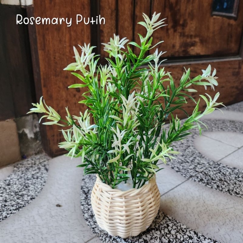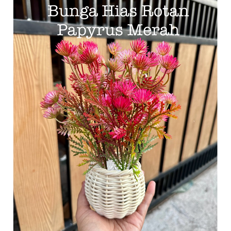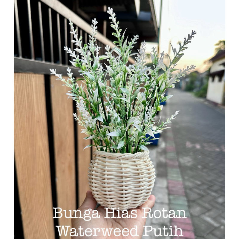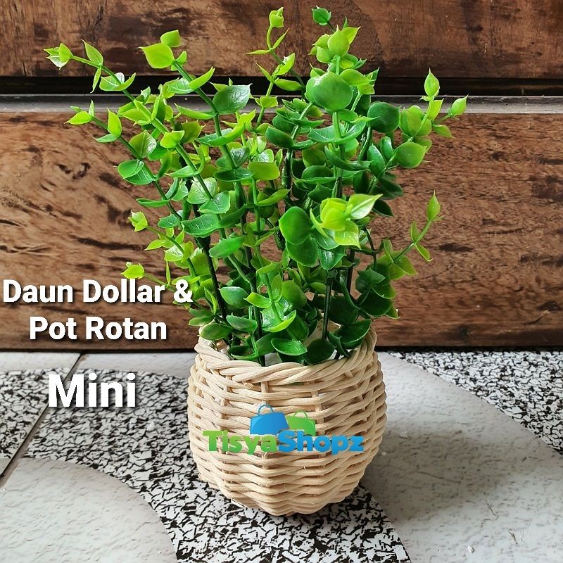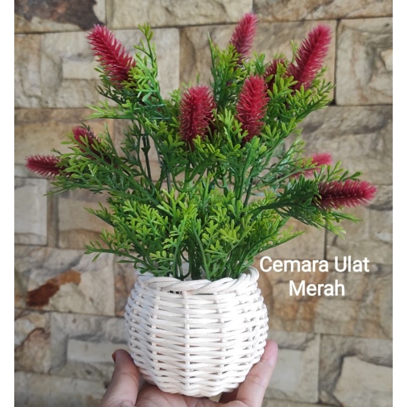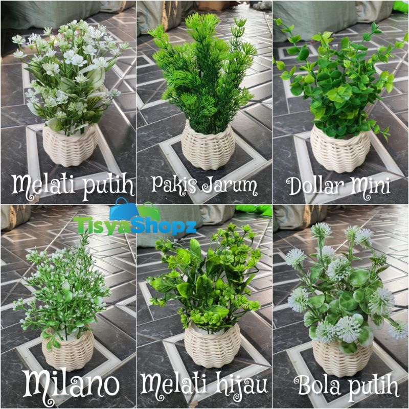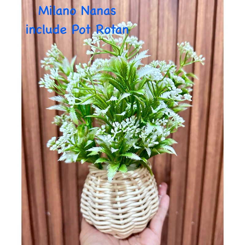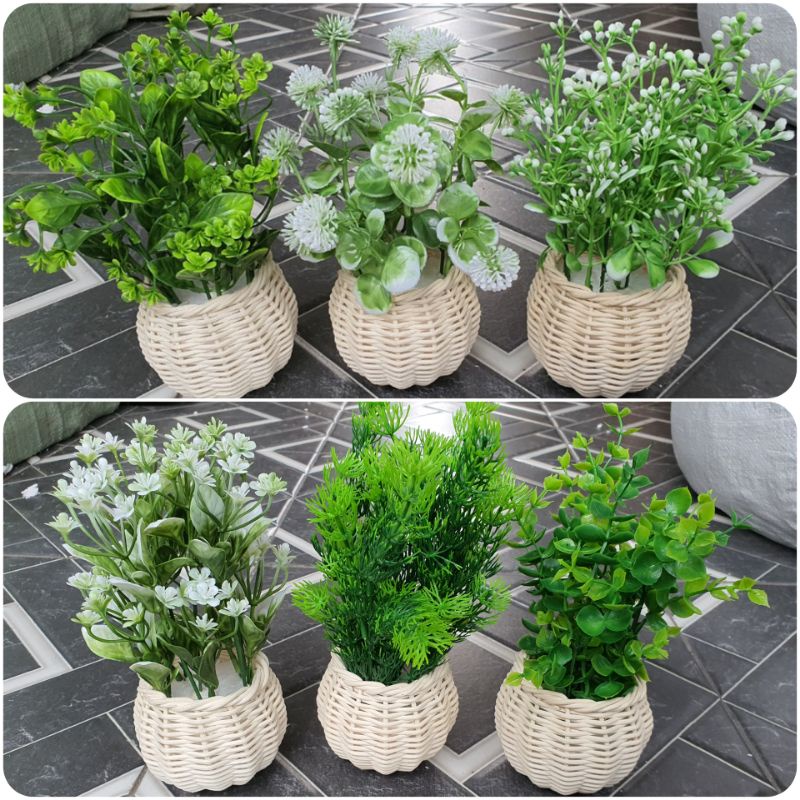 Bunga Pinus Hijau + Pot Rotan Set