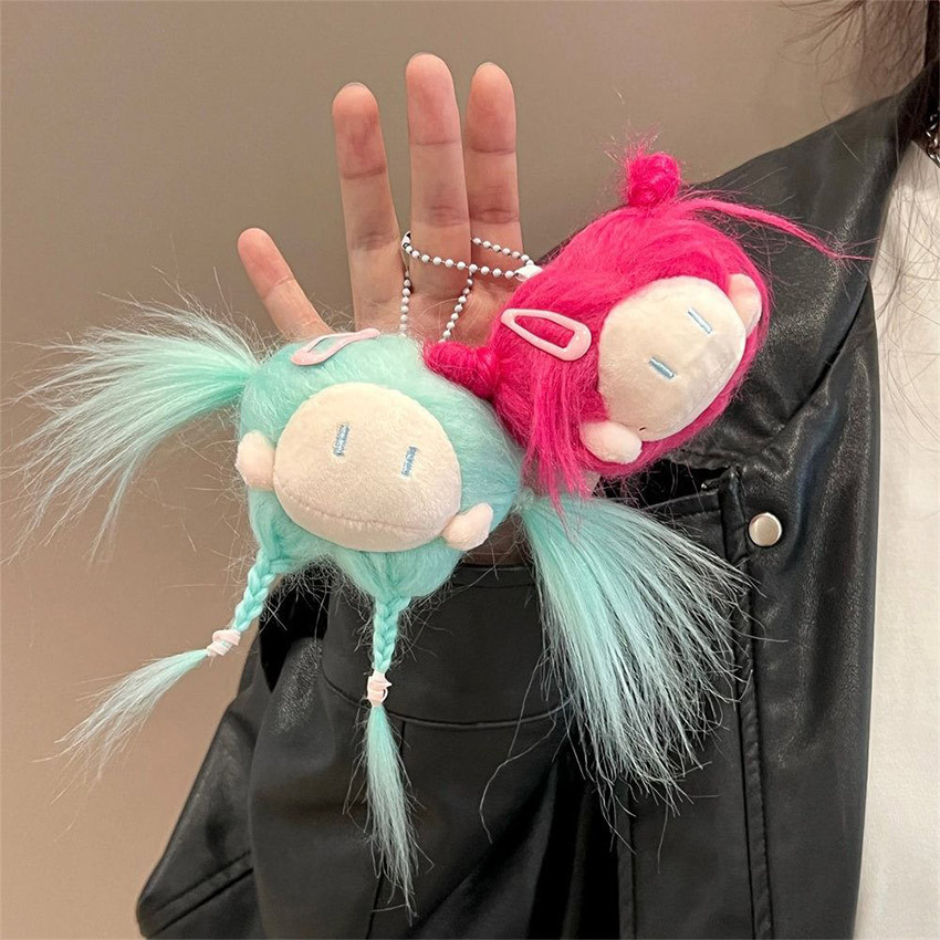 DIY Hairstyle Keychain Ugly Girl Cute Doll Pendant Plush / Gantungan Kunci Boneka DIY Hair Style Girl Make Over Rambut Liontin Gantungan Tas Boneka Bag Charm / Gantungan Kunci Rambut Boneka Lucu