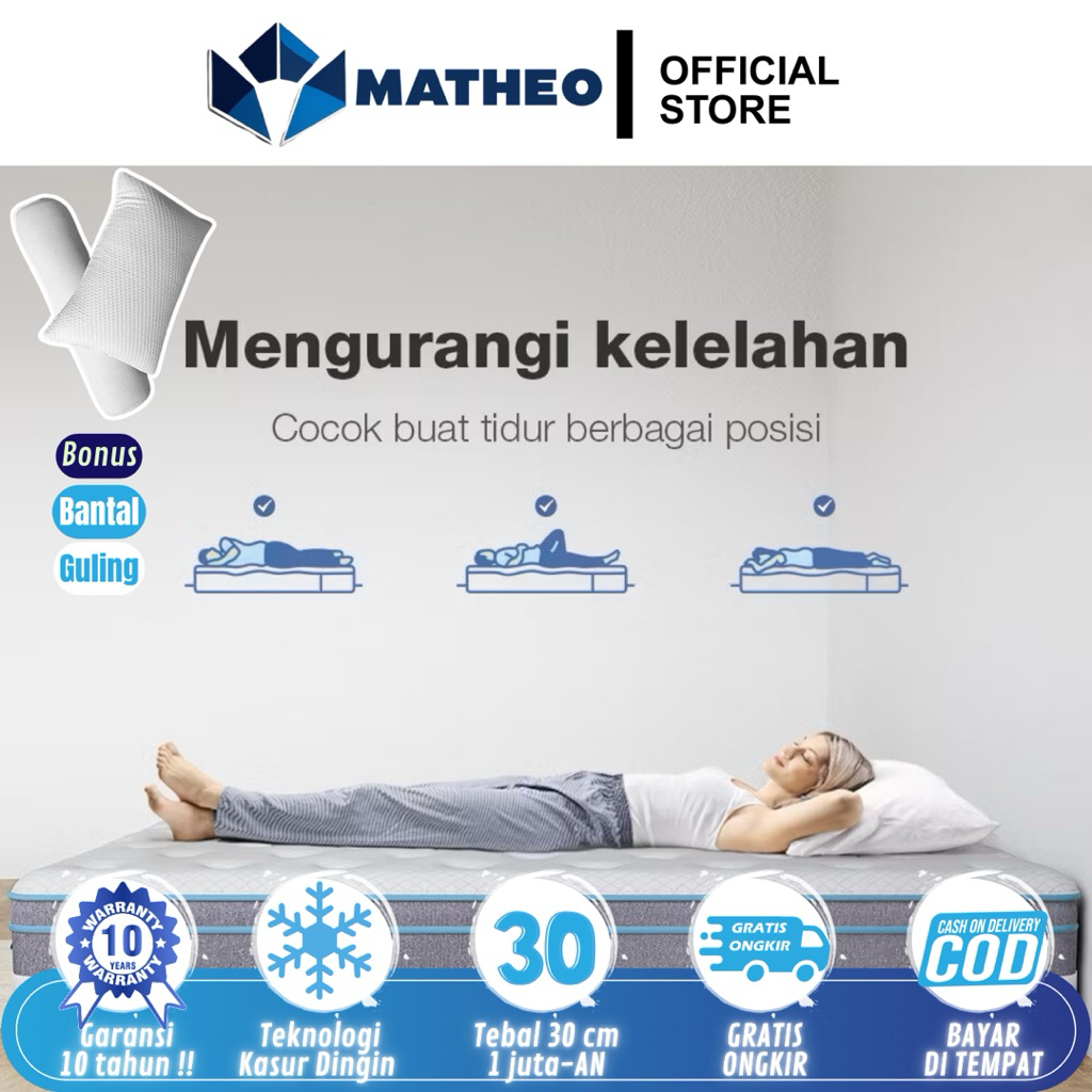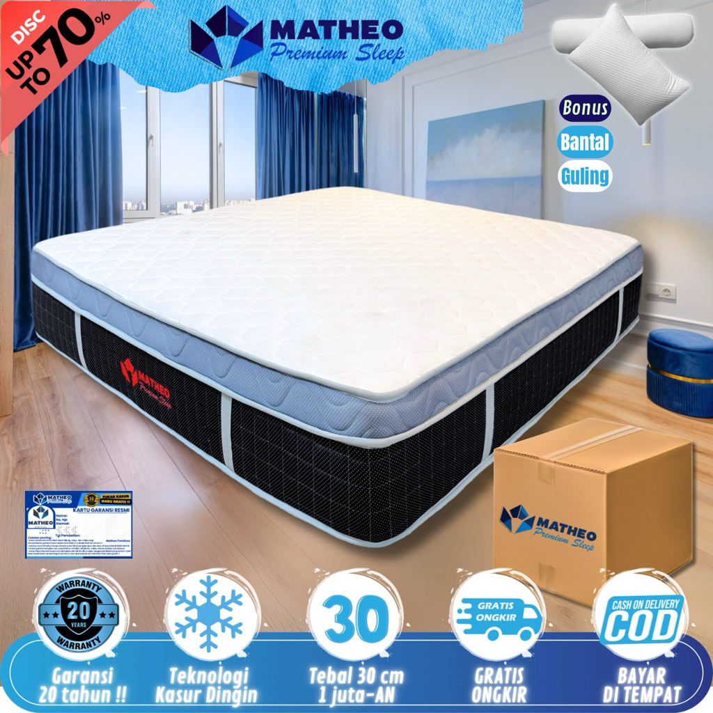 MATHEO - KASUR FULL BUSA GARANSI 20 TAHUN TANPA PER PLUSH TOP Premium Sleep || PLUSH TOP / EUROTOP / TOPPER / SUPPORT ORTHOPEDI / ORTHOPEDIC / MATRAS IN BOX FULL BUSA / HIGH DENSITY FOAM / KASUR KESEHATAN TULANG [Free Bantal + Guling]