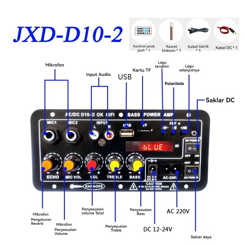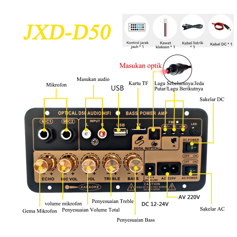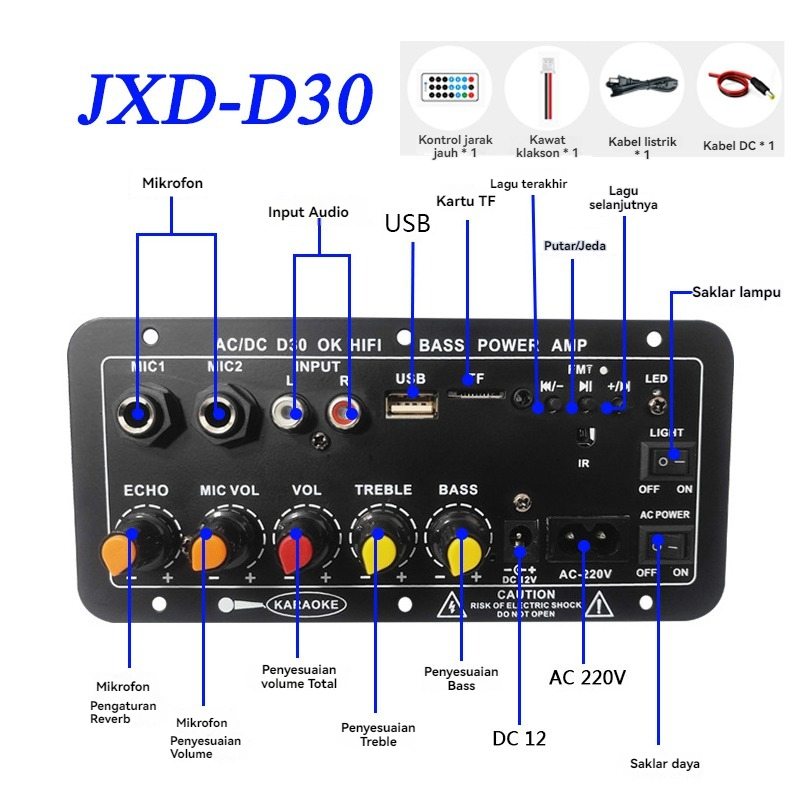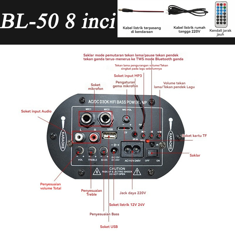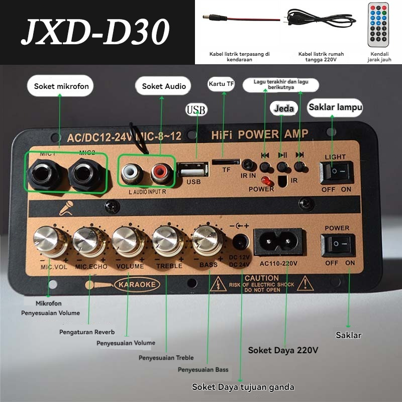 Amplifier Bass Subwoofe Mini Bluetooth 5.0 Untuk 8-12 Inci Speaker AC 220V 12V 24V USB Bluetooth Stereo Karaoke + Mp3 player + FM Radio 20w 30w 5inci 10inci Remote Control HIFI Penguat Daya Amplifier HiFi BASS mikrofon