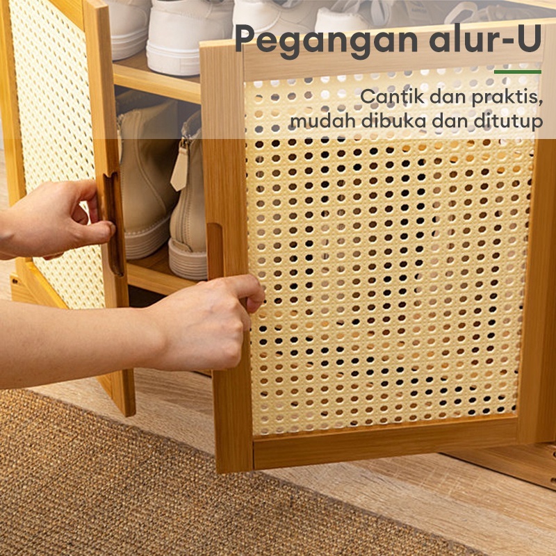 Lemari Sepatu Rak Sepatu Duduk Lemari Sepatu Bambu Lemari Sepatu Multifungsi dengan dan Hemat Ruang
