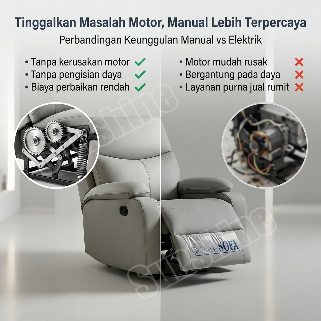 Sunshine Sofa Elektrik Sofa Recliner Fabric 1 Seater-Putih Kursi Santai Sofa Sudut Sandaran