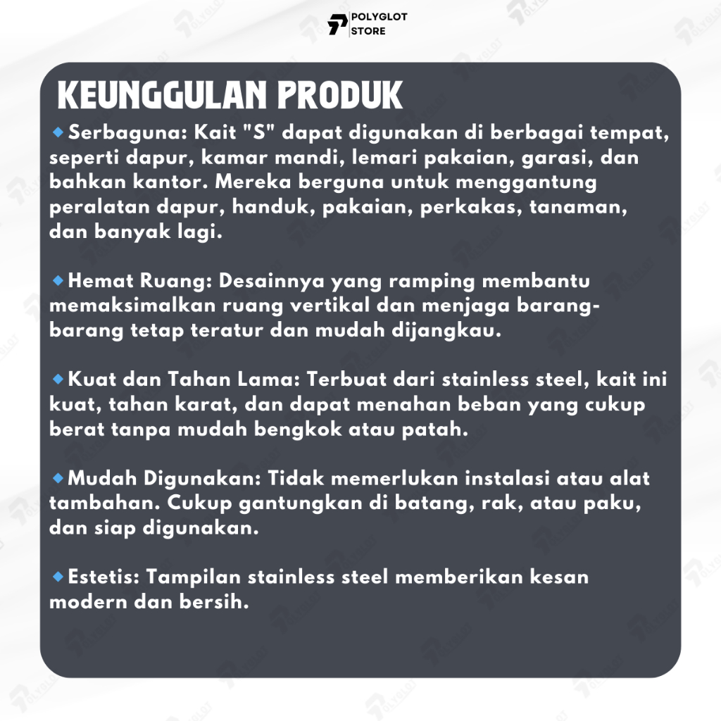 [12 Pcs] Hanger Gantungan Serbaguna Cantolan S S Type Hook Stainless Steel Dapur Lemari