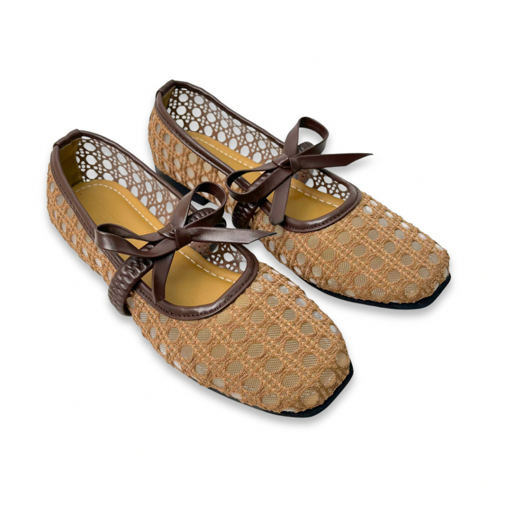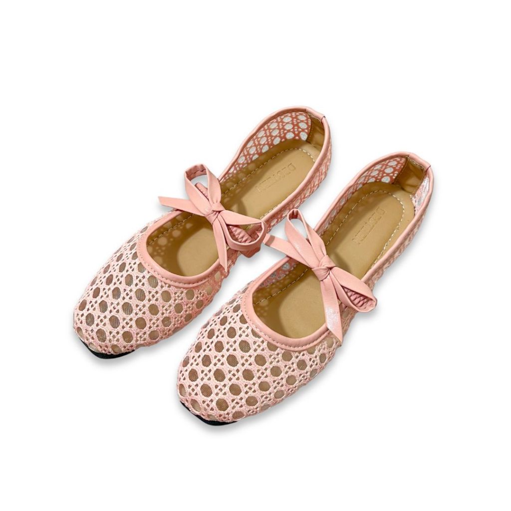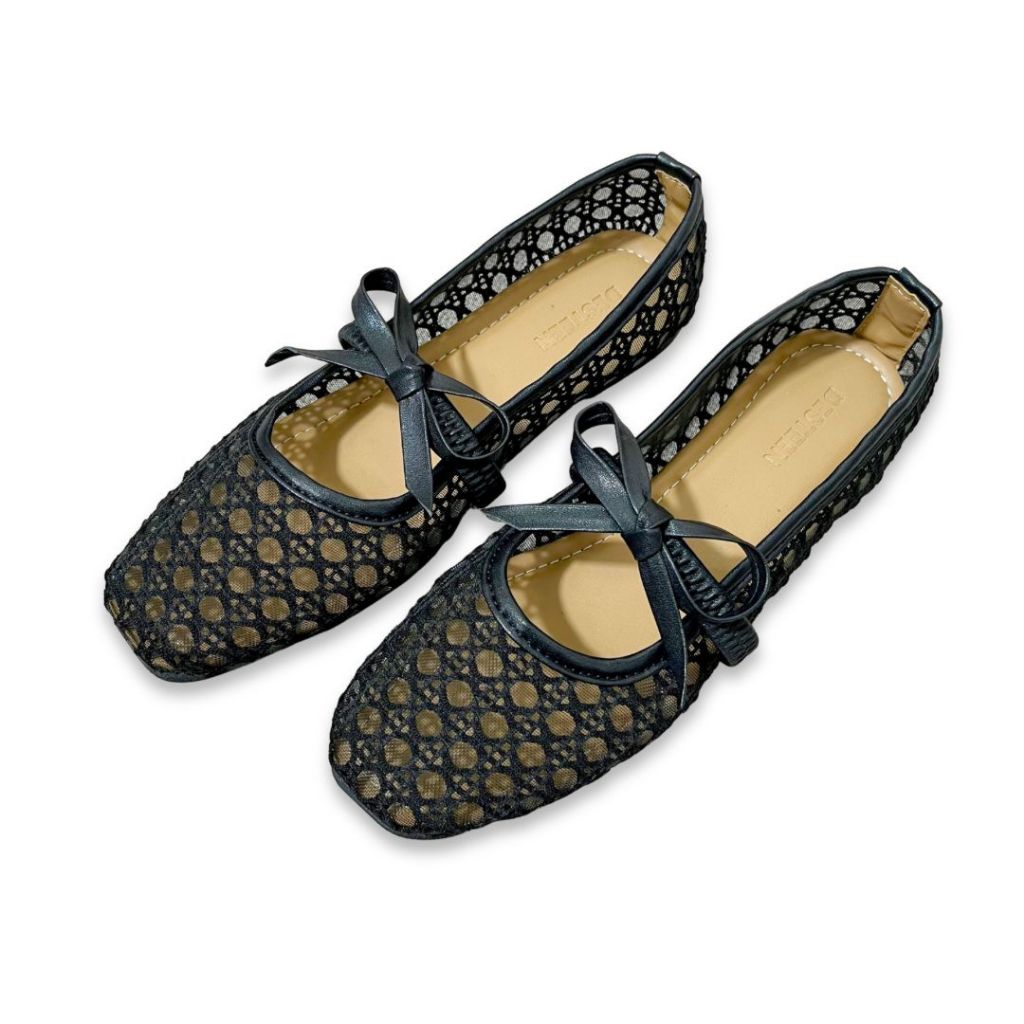 Desteen - [NEW] Haifa Flat Shoes Model Jaring Variasi Tali Pita | Sepatu Lebaran 2026 Jaring Wanita Empuk