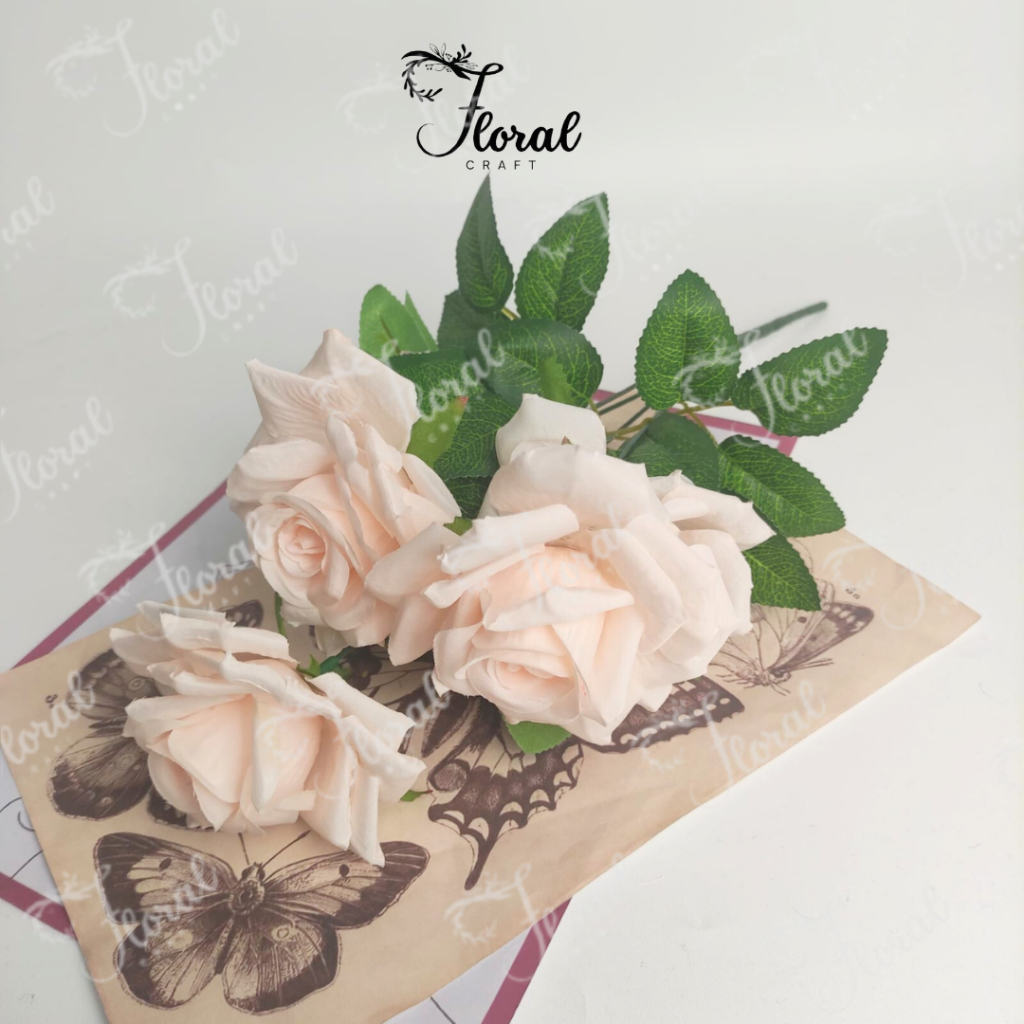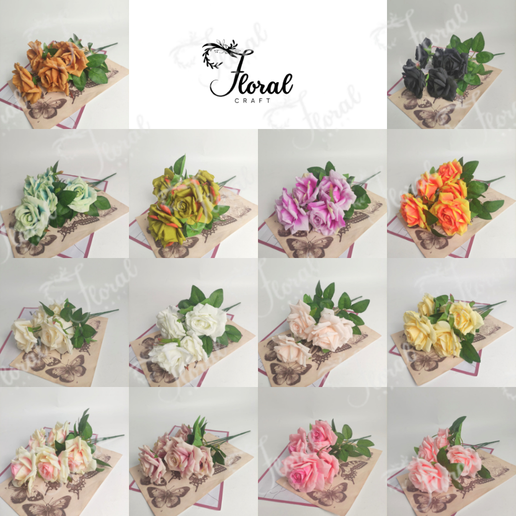 Bunga Mawar Gemoy (Real Rose) Cabang 5 Artificial - Mawar Mekar Besar Premium Dekorasi Pelaminan Buket Cantik Hiasan Rumah