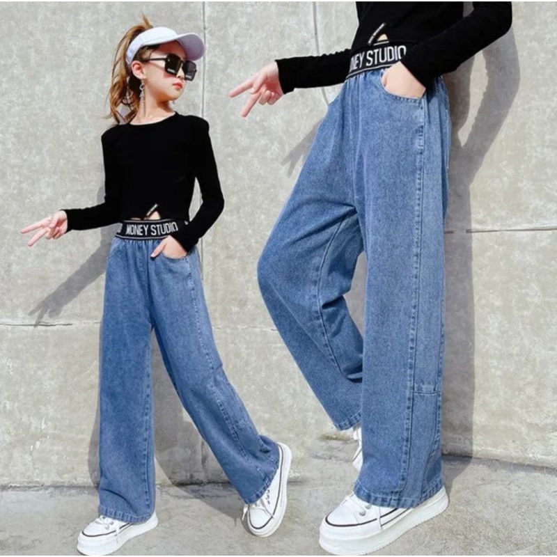 Celana Kulot wanita musim panas lurus longgar dan tipis money studio