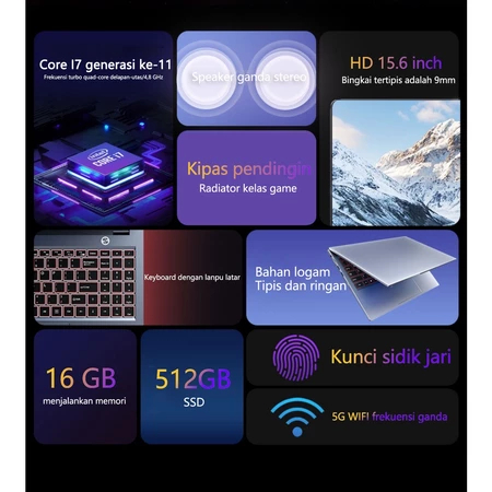 Lenovo Laptop RAM 16 + 512GB SSD Intel Core i5 14.1“/i7 15.6'' HD Windows 11 Pro Office Garansi 1 Tahun