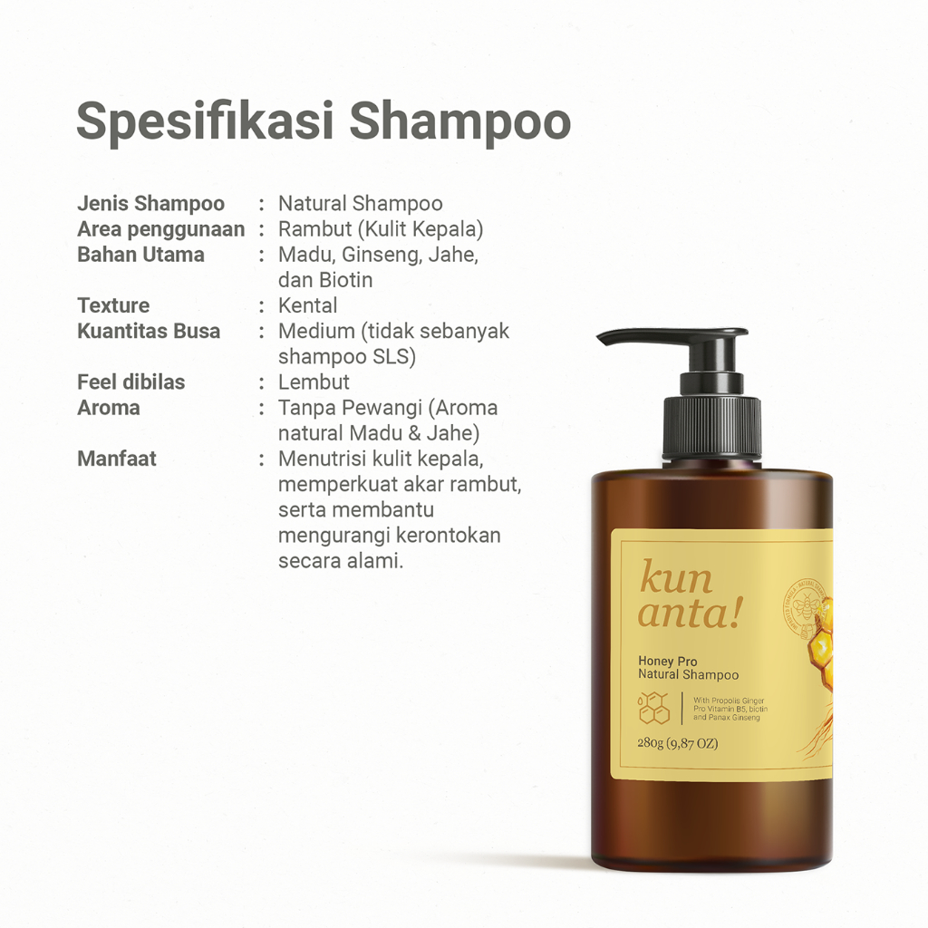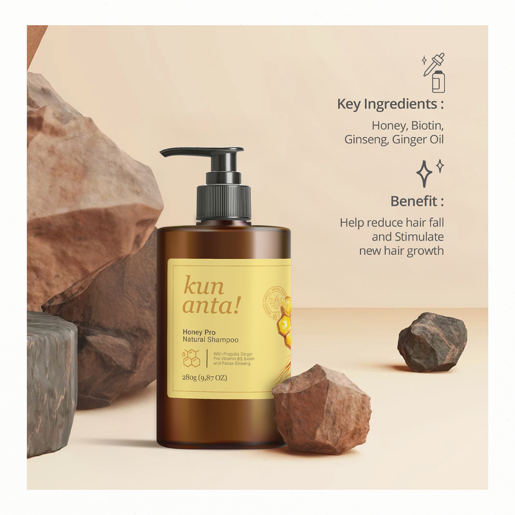 Shampoo Rambut Rusak & Rontok Natural Non SLS - Honey + Biotin, Ginger Oil, Gingseng & Propolis