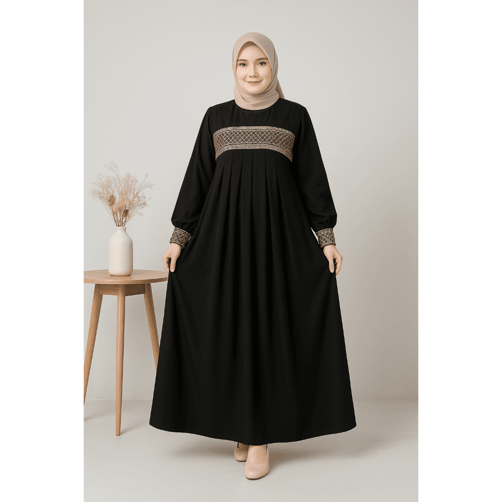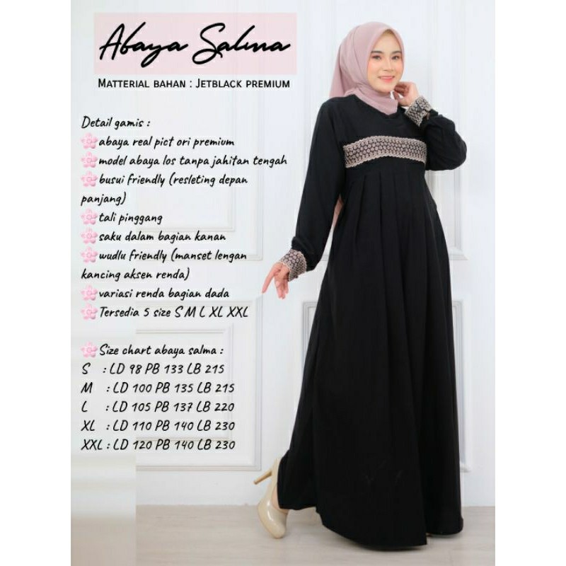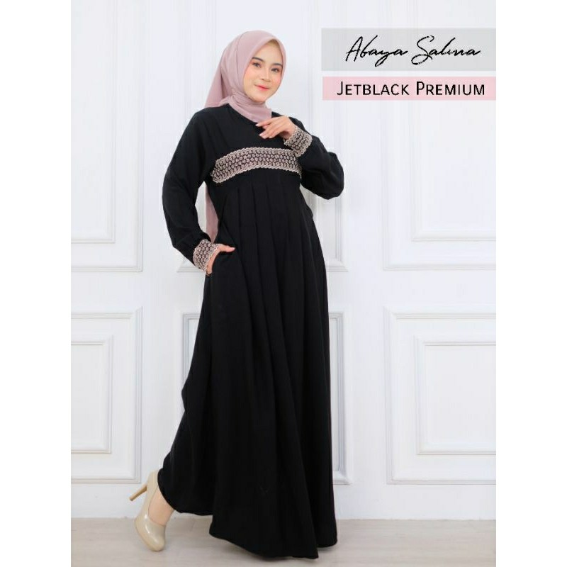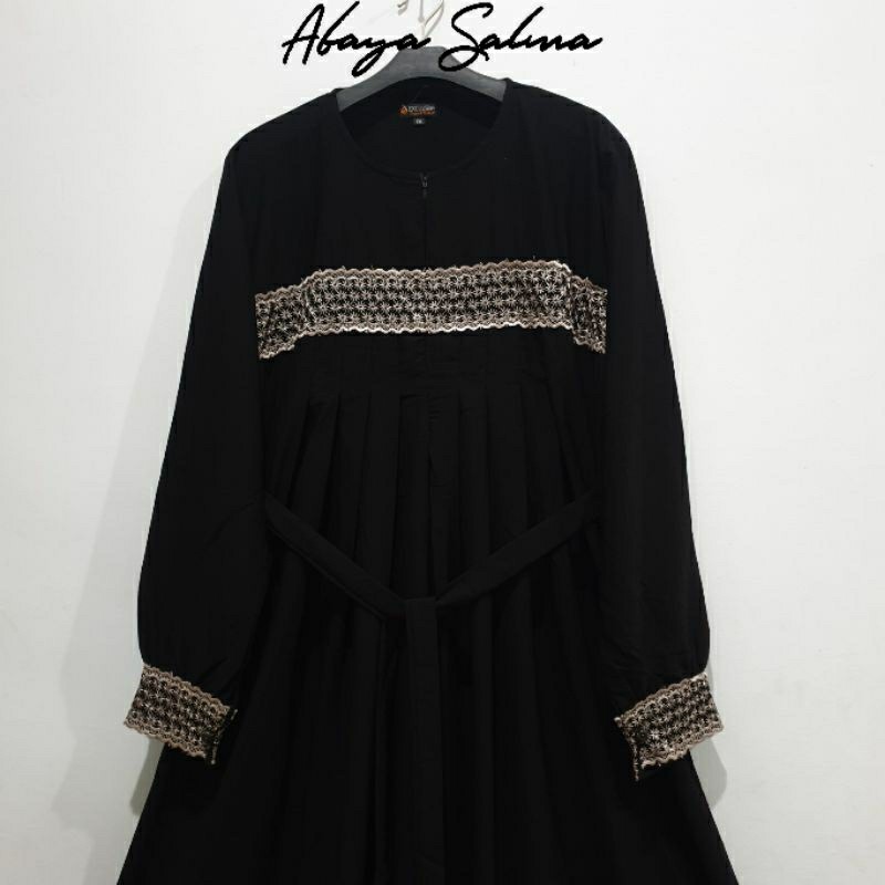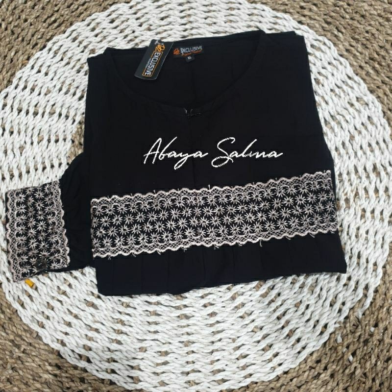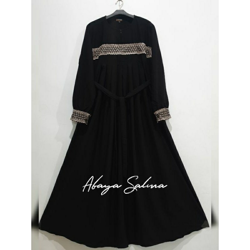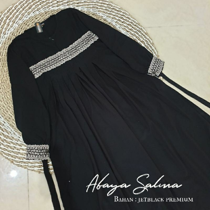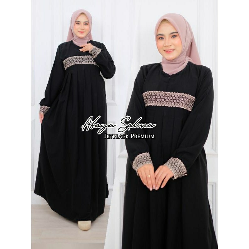 BRANDBYME - Abaya Salma Jetblack Renda Gamis Hitam Pekat Terbaru 2025