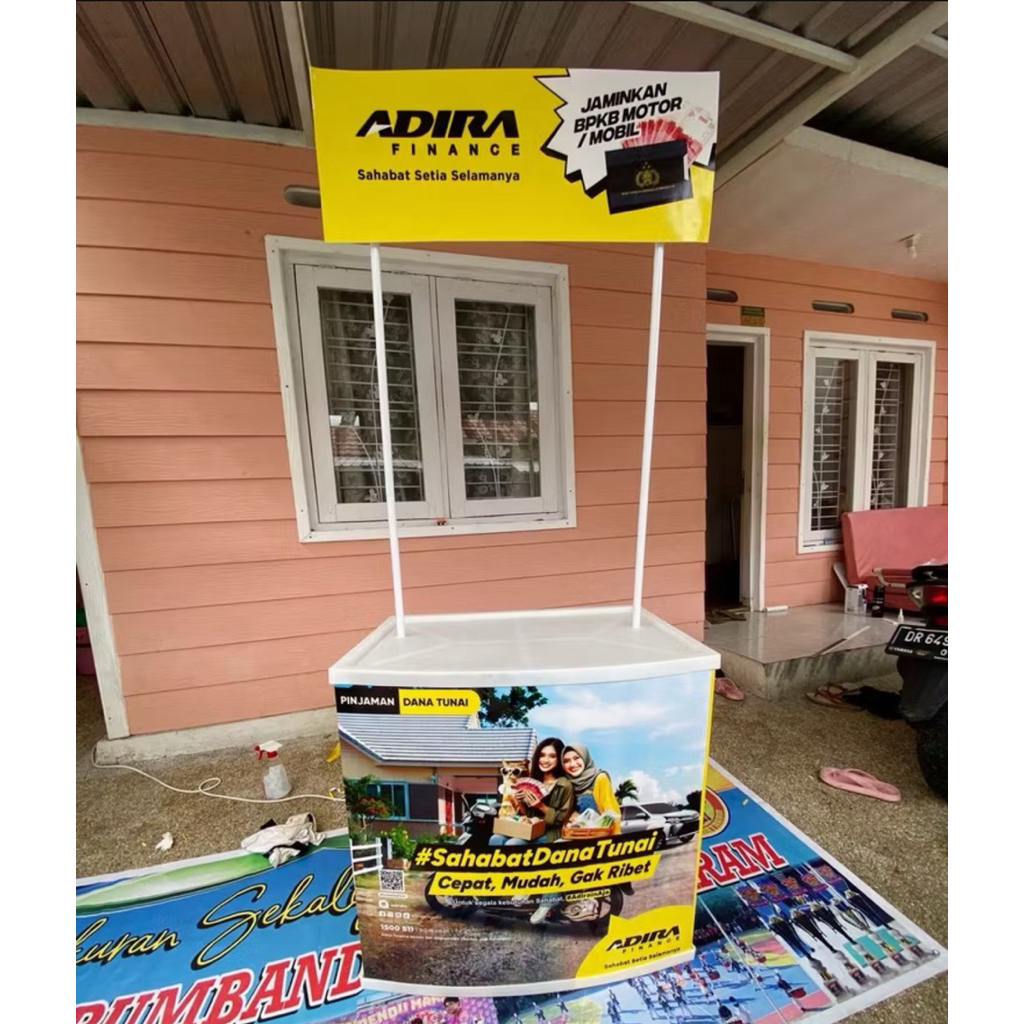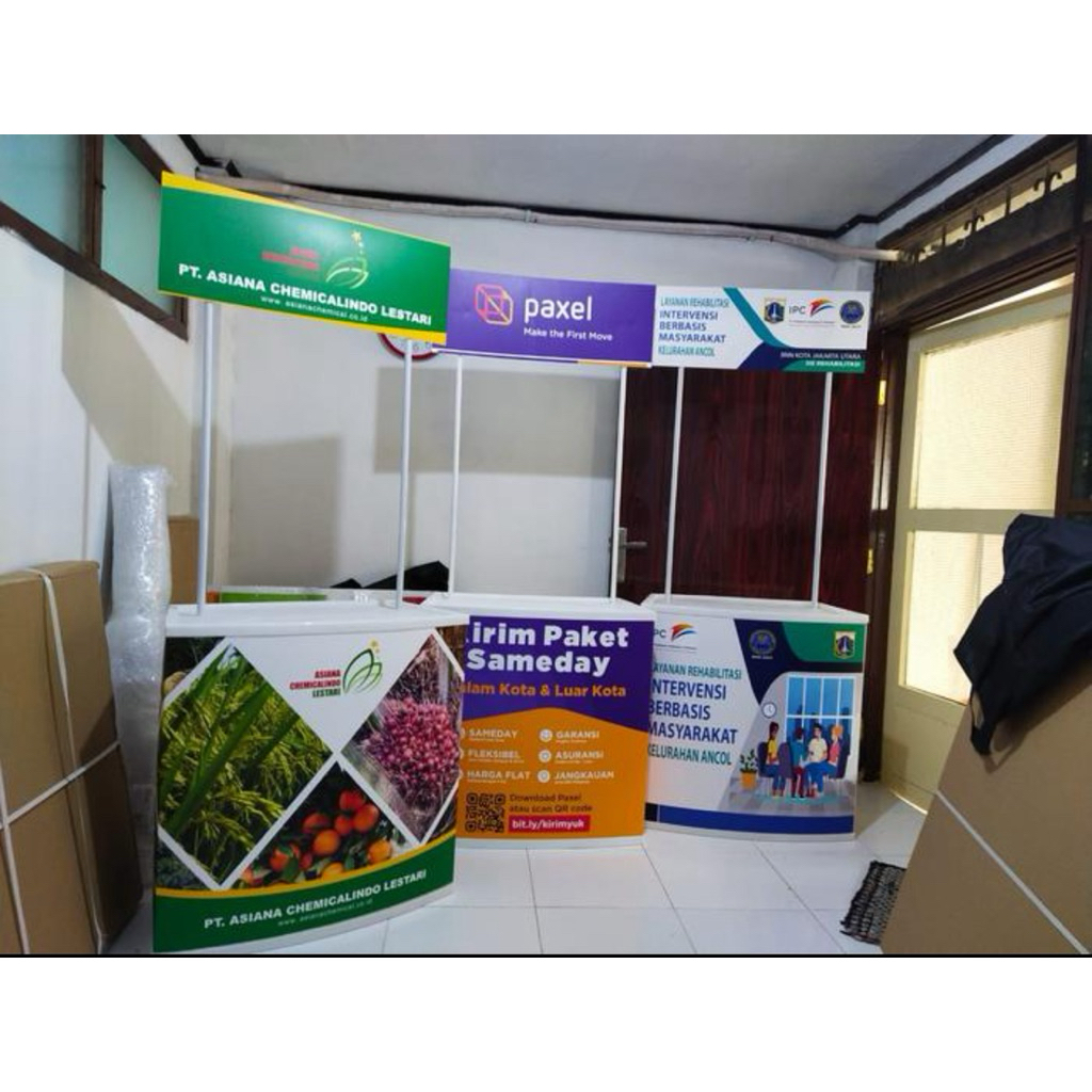 MEJA BOOTH DISPLAY HEADER PROMOSI STANDING JUALAN STAND PAMERAN EVENT ACARA MEJA TABLE DESK PRINTING CUSTOM KNOCK DOWN KANTOR MALL CAFE BAR SEKOLAH EXPO PEKAN RAYA JAKARTA PRJ HUT ULANG TAHUN DIRGAHAYU LOGO PERUSAHAAN