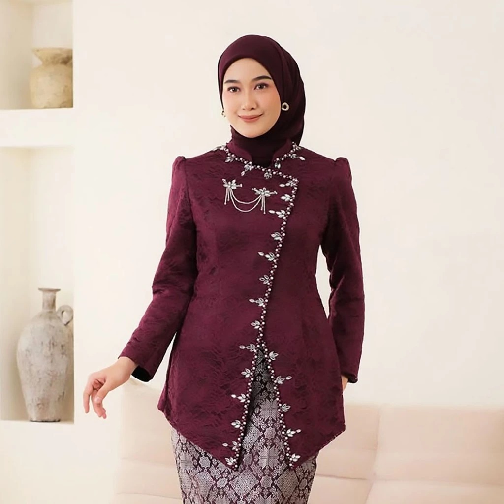(READY XXL) - Set Kebaya Modern Janggan Series Special Mahogany - Kebaya Full Payet Rok Songket Halus Kebaya Lamaran Tunangan Kondangan Wisuda Seragam Bridesmaid Terbaru 2025