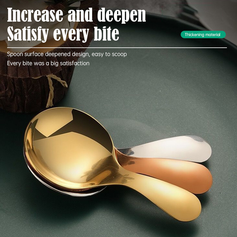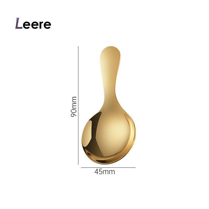LEERE -Gold Sendok Bergagang Pendek Baja Tahan Karat Sendok Es Krim Makanan Penutup Sendok Bulat Kecil Bumbu