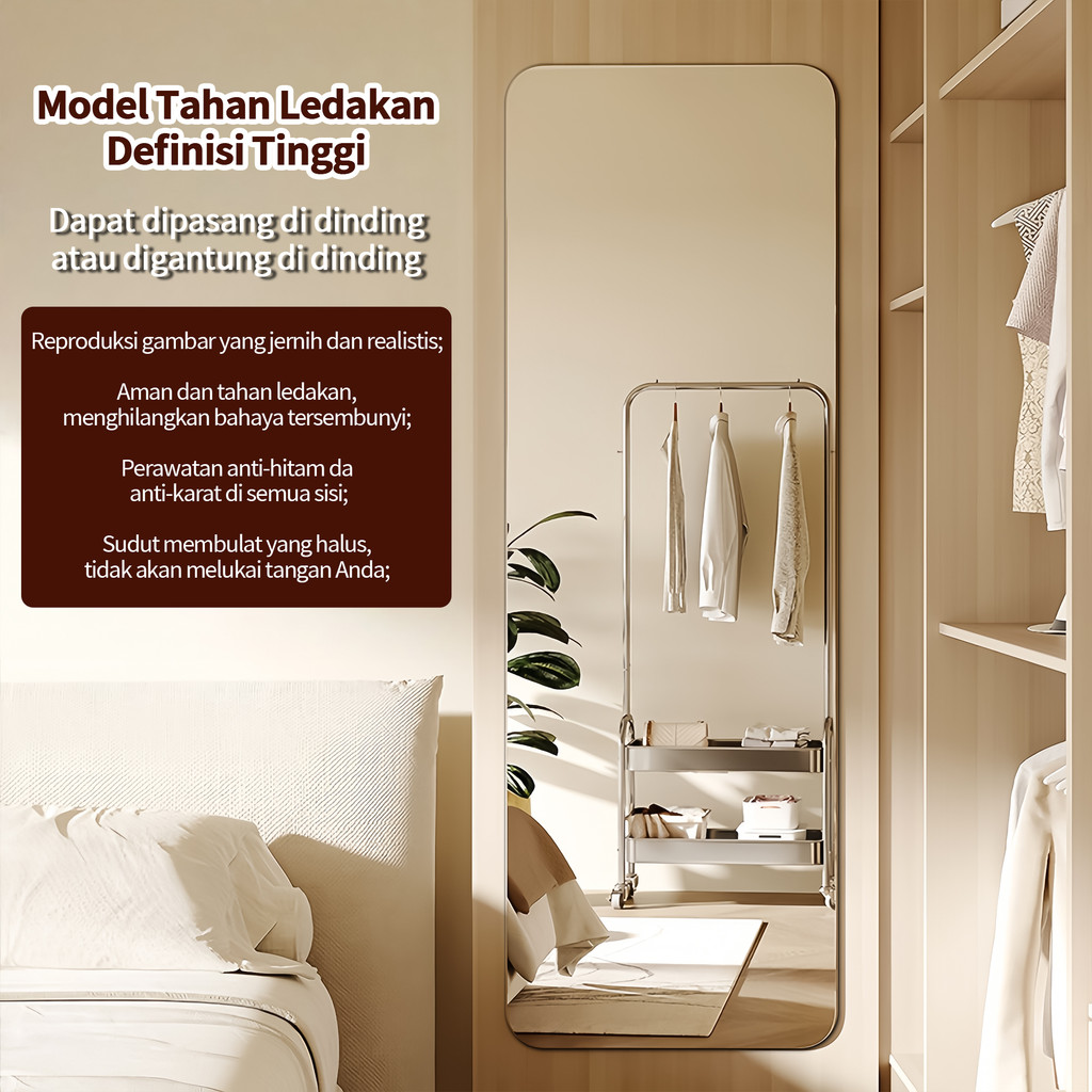 Cermin Akrilik Anti Pecah & Lentur Tempel Dinding Dekorasi Kamar Mandi Kamar Tidur