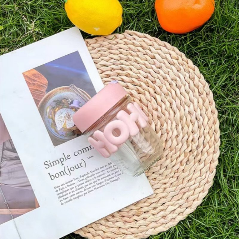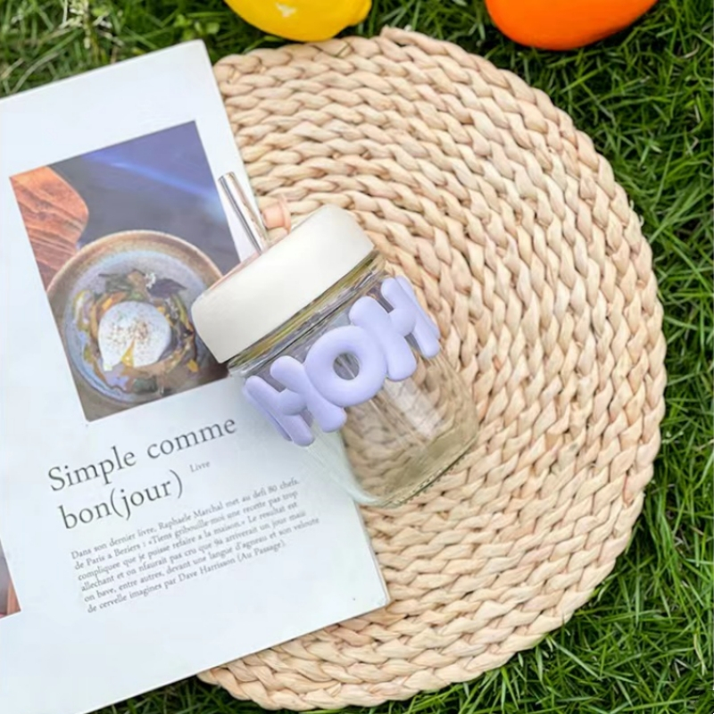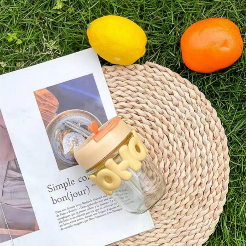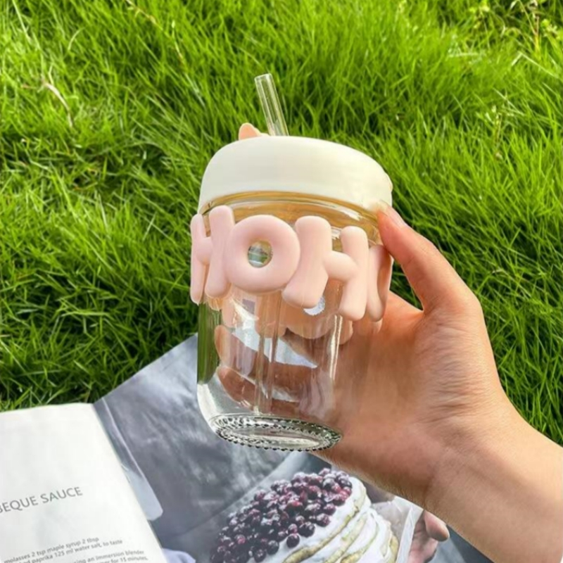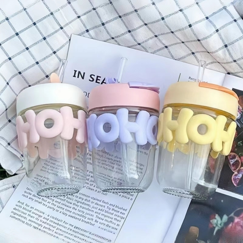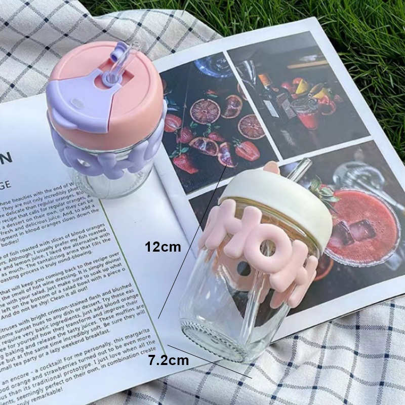 FIVEVOO Cangkir Gelas Ganda Sedotan/ Motif Cute350ml Gelas / Lucu Cangkir Mug Gelas/Gelas Kopi Susu Dengan Tutup Gelas Jerami Gelas