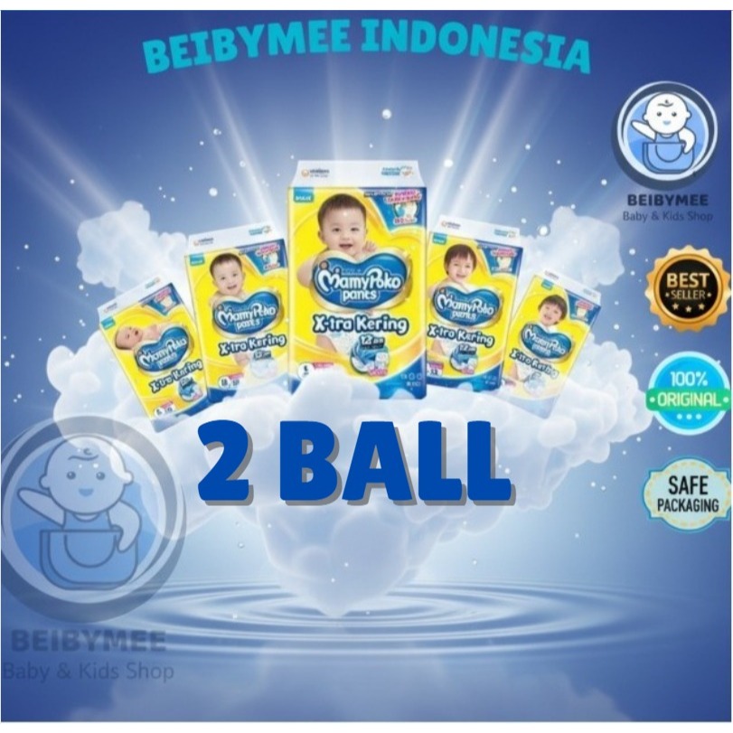 [ 2 BALL ] Beibymee MamyPoko Pants X-tra Kering - S/M/L/XL/XXL Popok Celana - Popok Celana 2 BALL