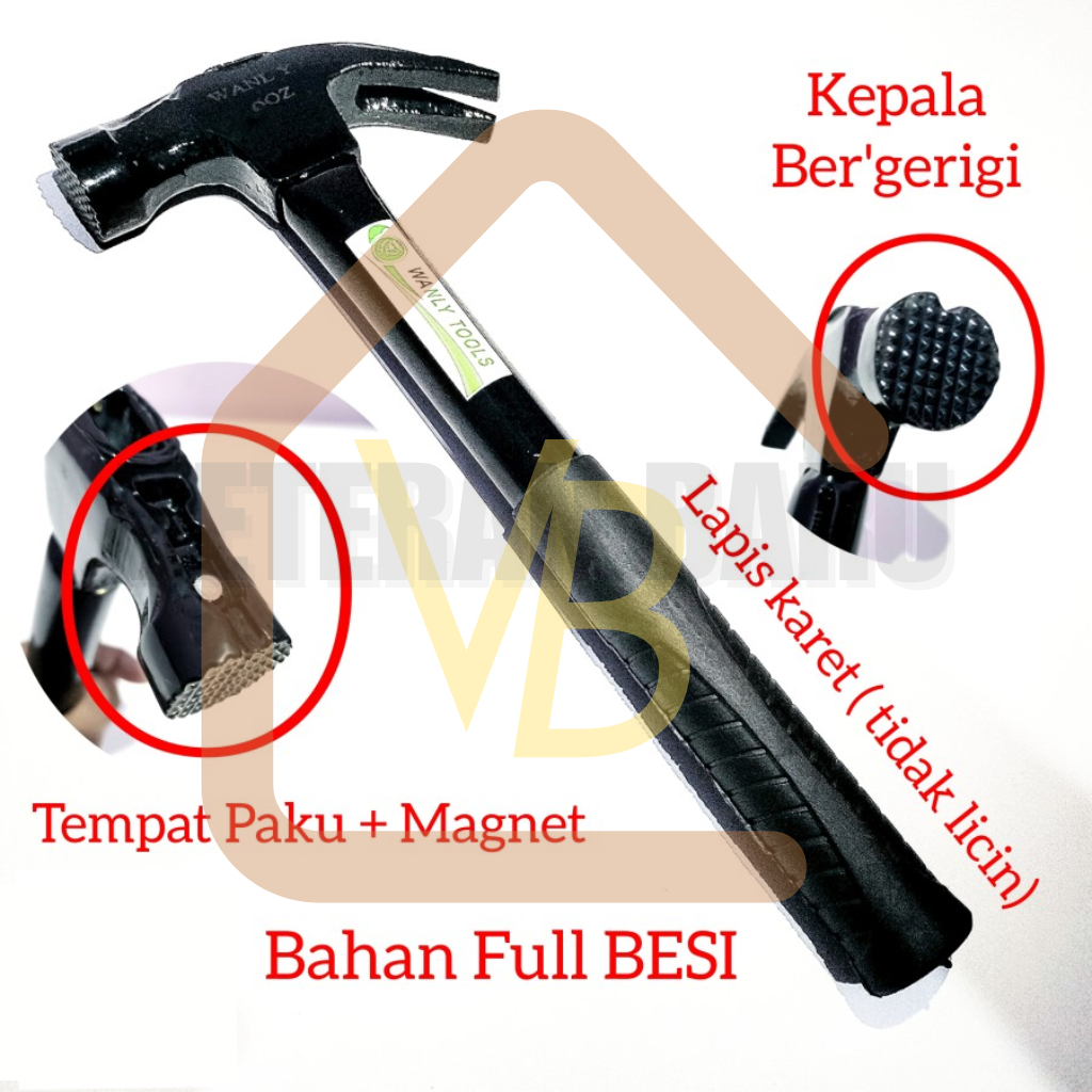 Palu Kambing Hitam Wanly Hammer Martil Gagang Besi Lapis Karet + Magnet 8oz 12oz