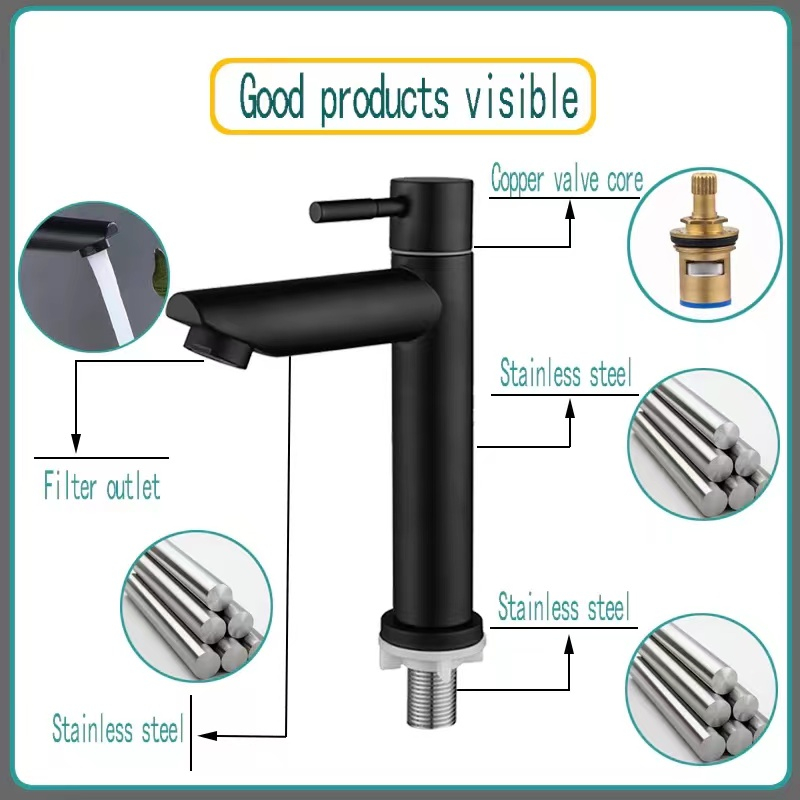 SUS 304 Kran Wastafel Cuci Tangan 18cm/Kran Wastafel Cuci Piring/Kran Air 1/2 Inch/Kran Cuci Piring