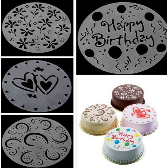 HERLANT STENCIL STENSIL CAKE KUE ISI 4 / SET DEKORASI DECOR BUBUK COKLAT SPRAY