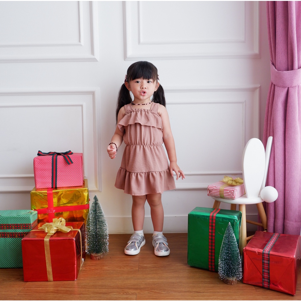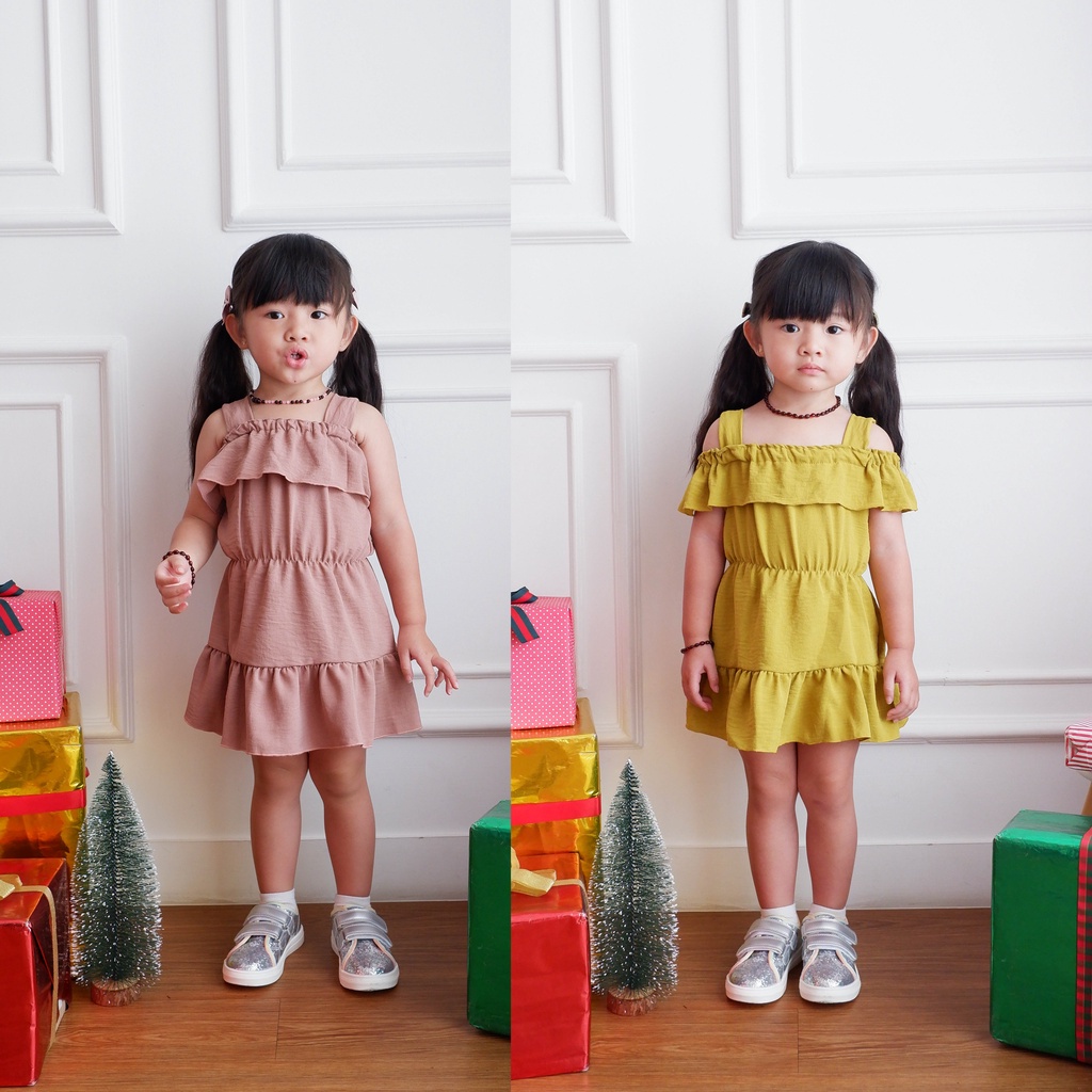 Dress anak import Dress fashion anak -Dress Anak tali pundak korea style | Dress Sabrina baju anak perempuan usia 1-5 Thn