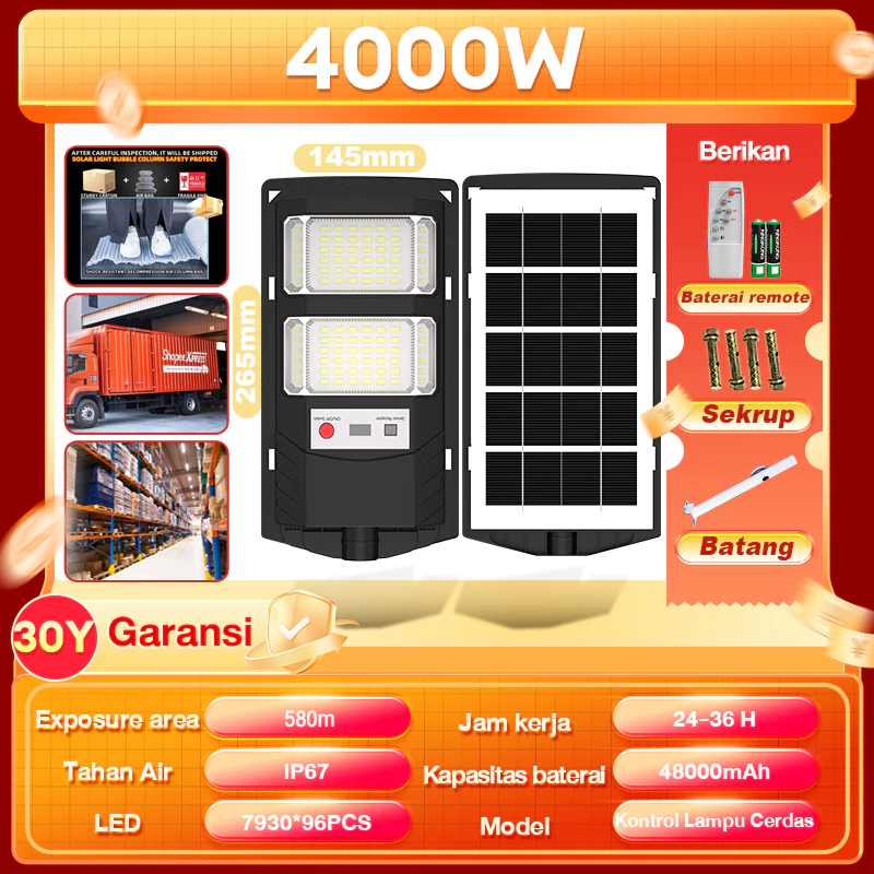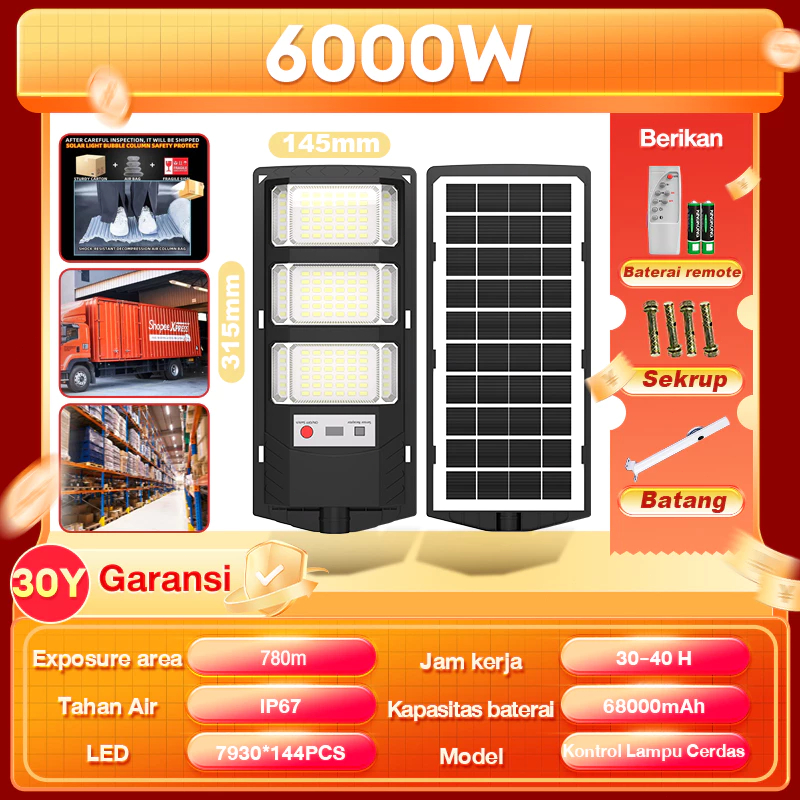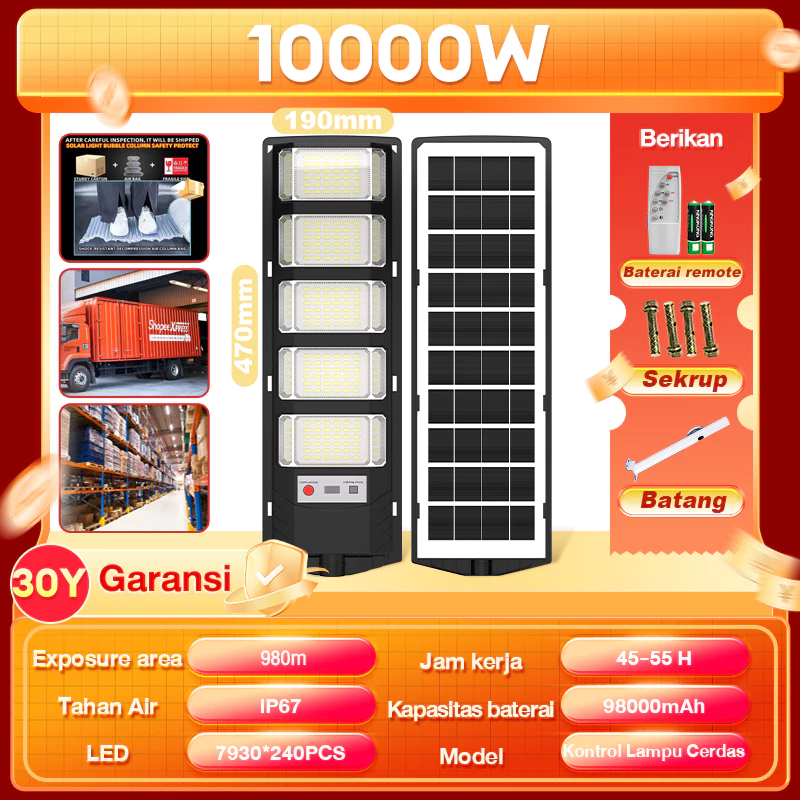 Garansi 30 tahun lampu tenaga surya outdoor otomatis nyala jalan LED 10000W Lampu Jalan Tanpa Kabel Tanpa Listrik