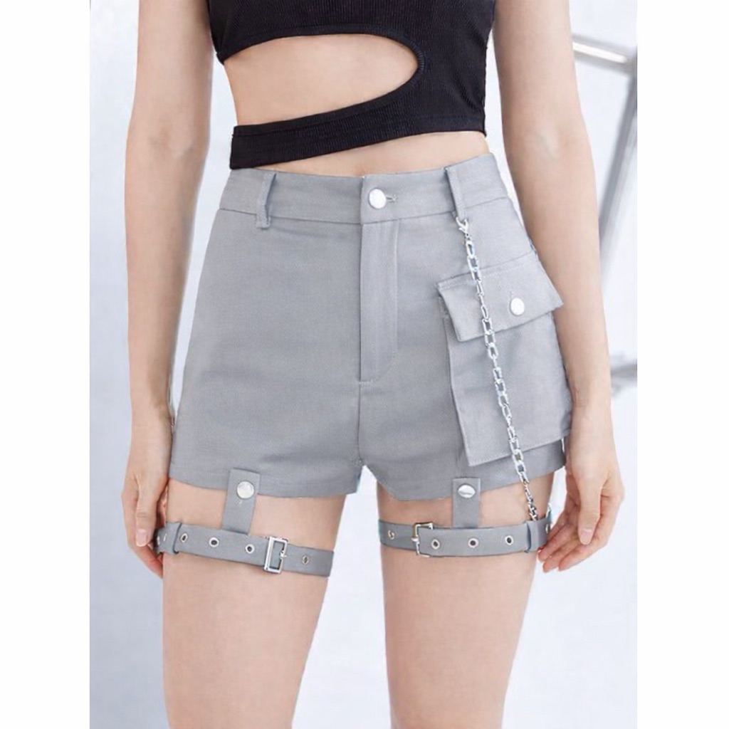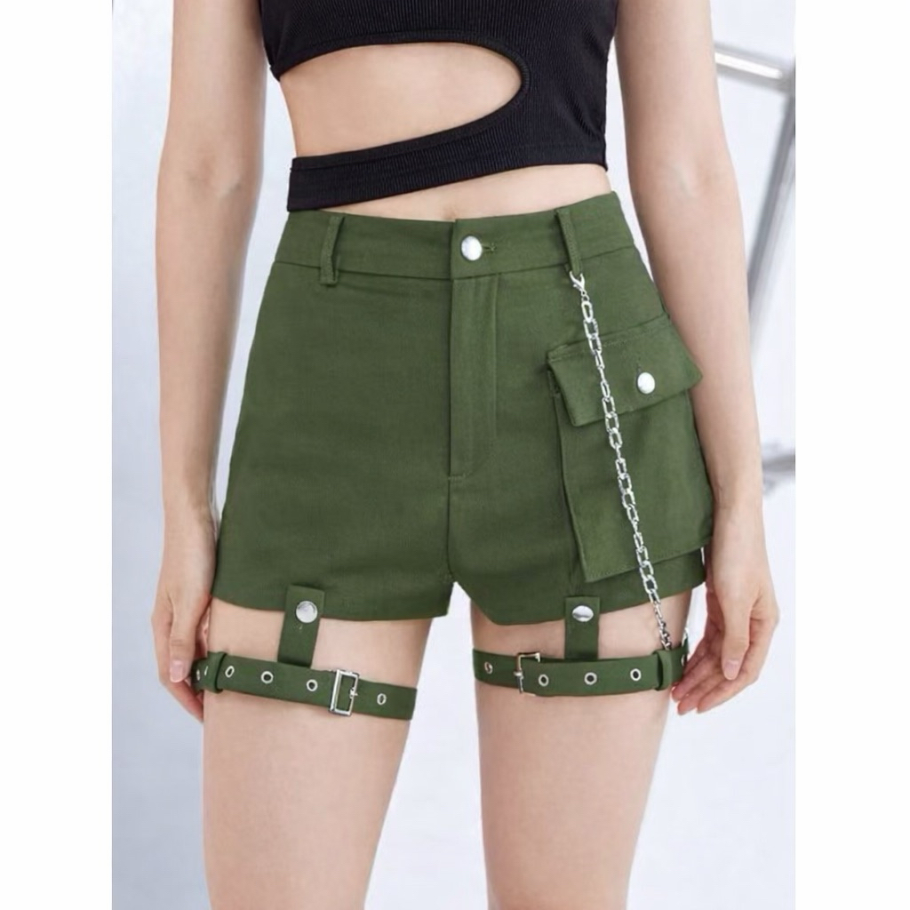 celana pendek wanita punk cargo rantai premium | short pants wanita streetwear korea style | hotpants rantai punk ghotic kekinian