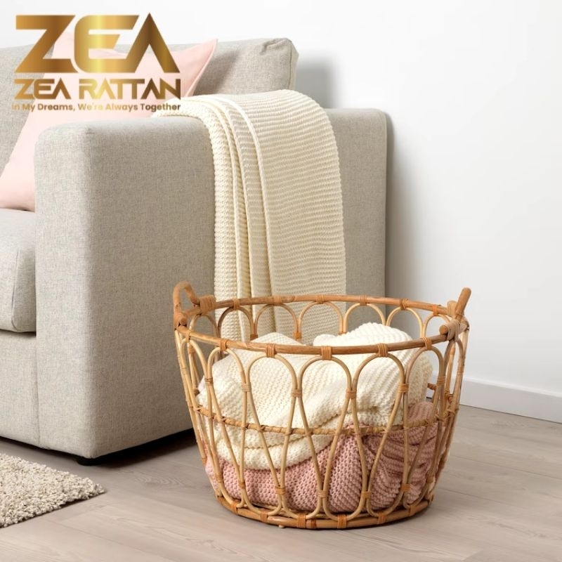 Keranjang Laundry Bulat Rotan Alami Natural Minimalis Murah High Quality