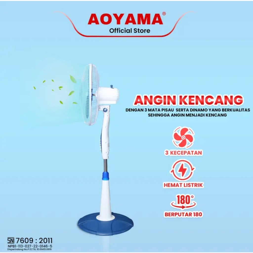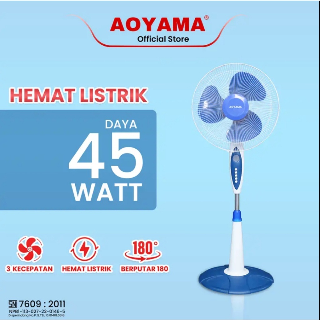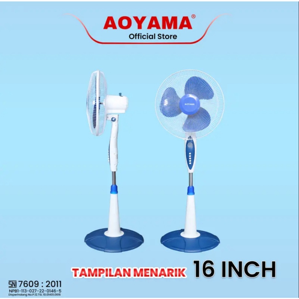 AOYAMA STAND FAN 16 INCH | KIPAS ANGIN BERDIRI ANGIN KUAT TINGGI BISA DIATUR – BEST SELLER COD