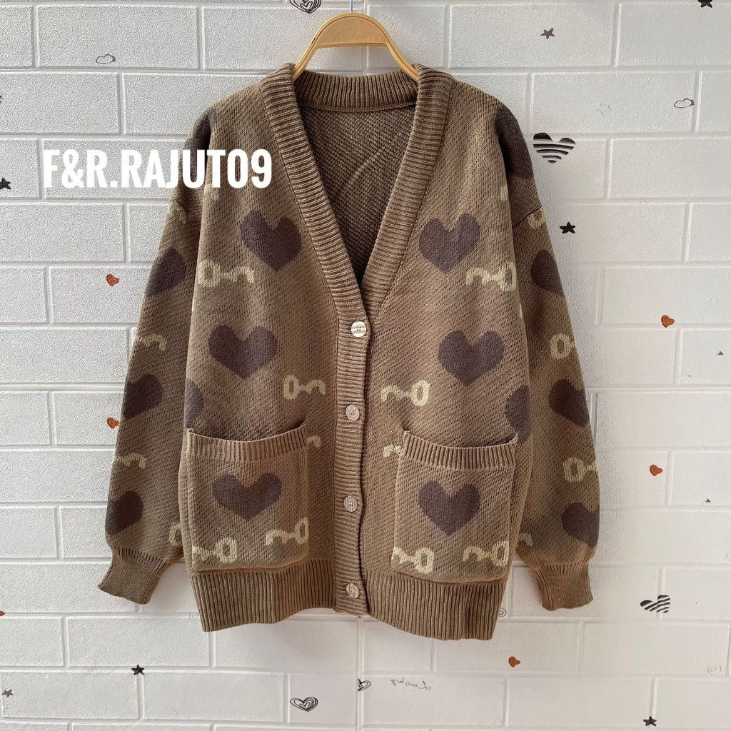 Cardigan Rajut Valentine Motif Love Kunci Oversize Outer Wanita