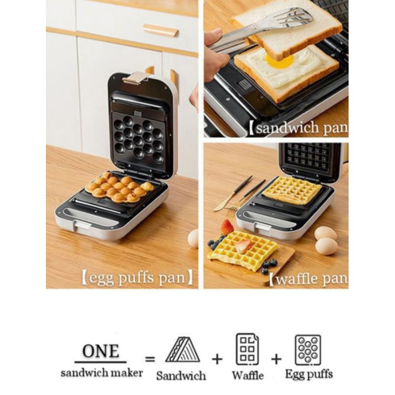 3 in 1 Sandwich Waffle Croffle Maker Machine - 3 Sets of Baking Plate (READY STOCK)