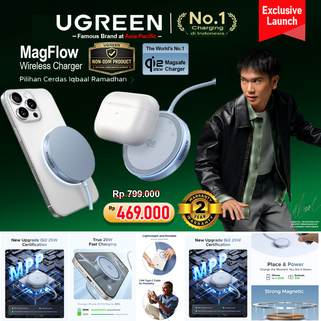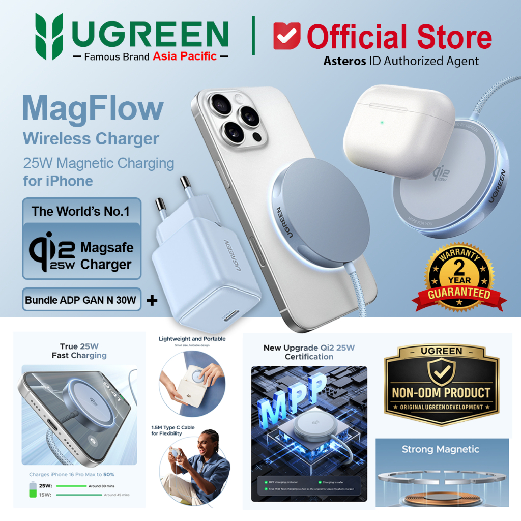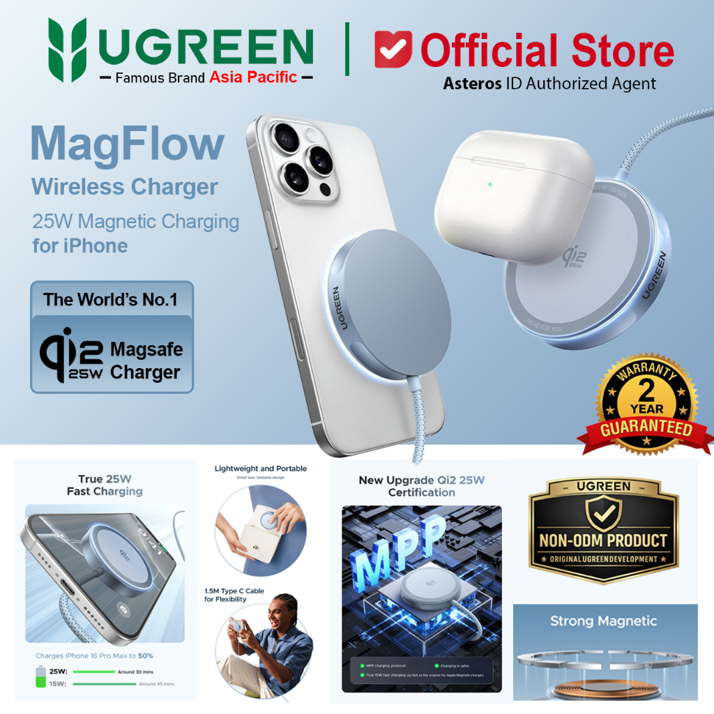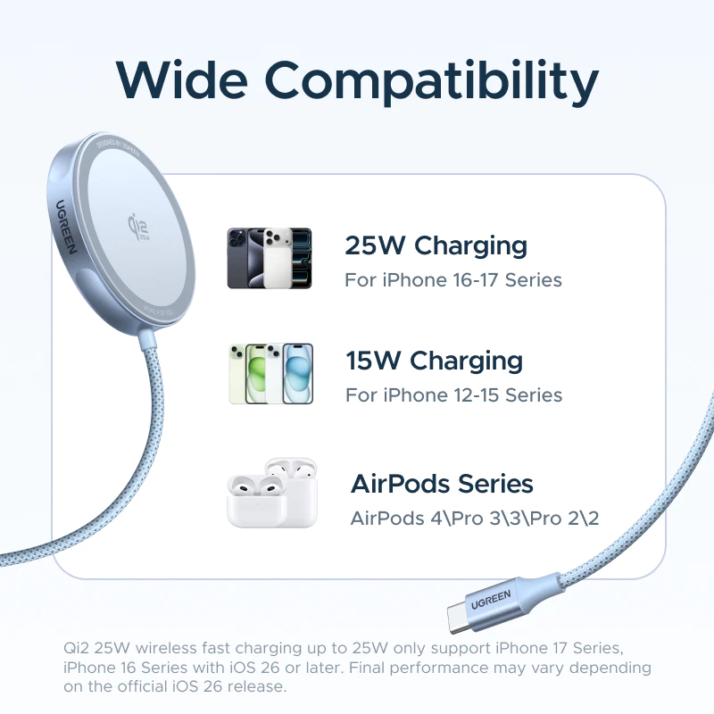 UGREEN MagFlow Qi2 Magnetic Wireless Charger For iPhone & Airpods Series Fast Charging 25W