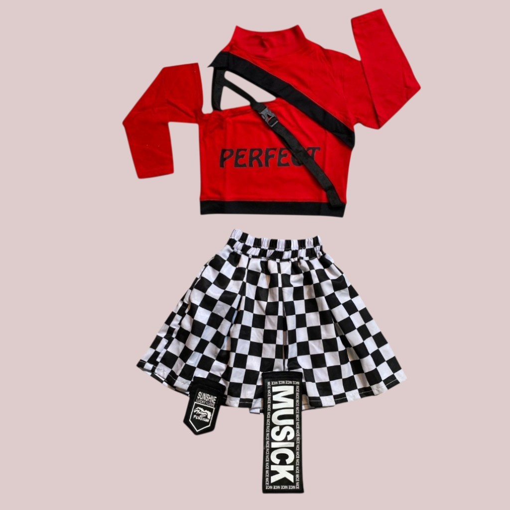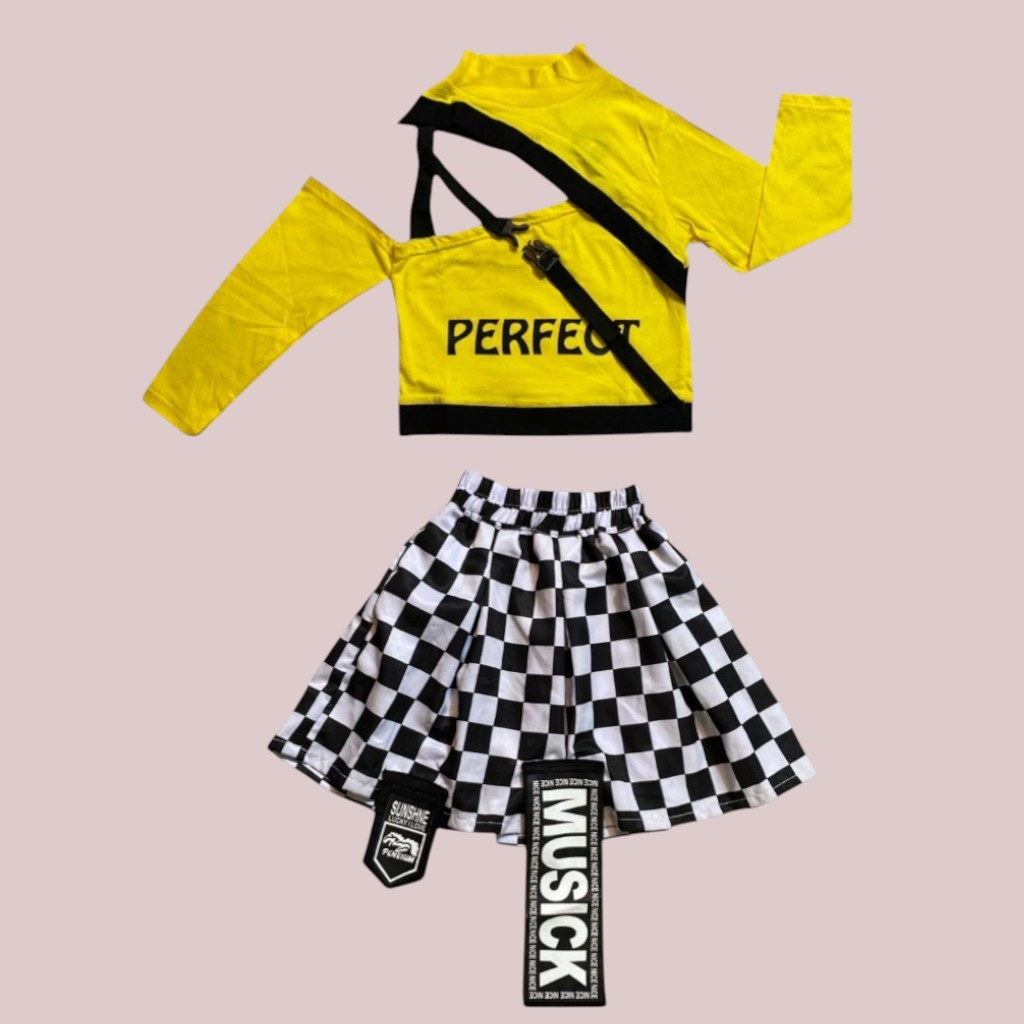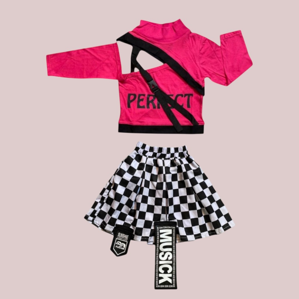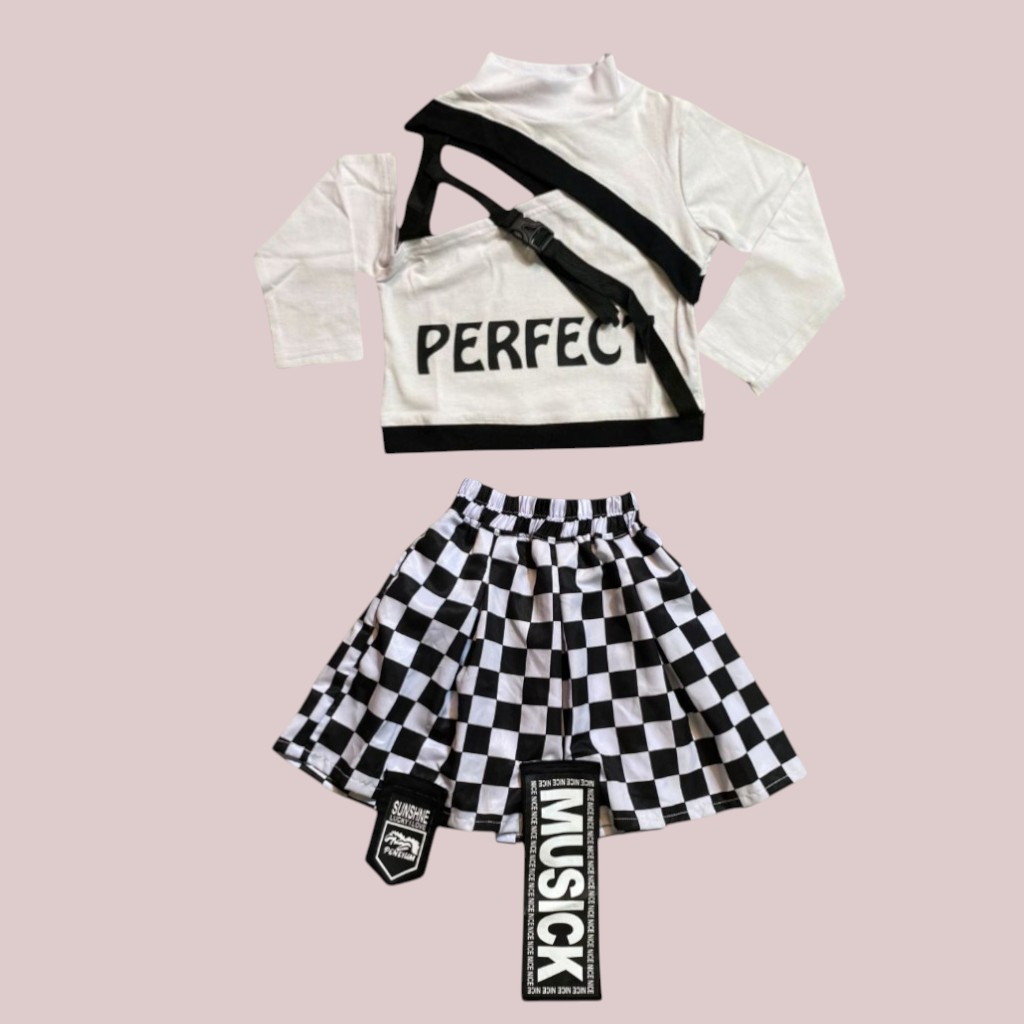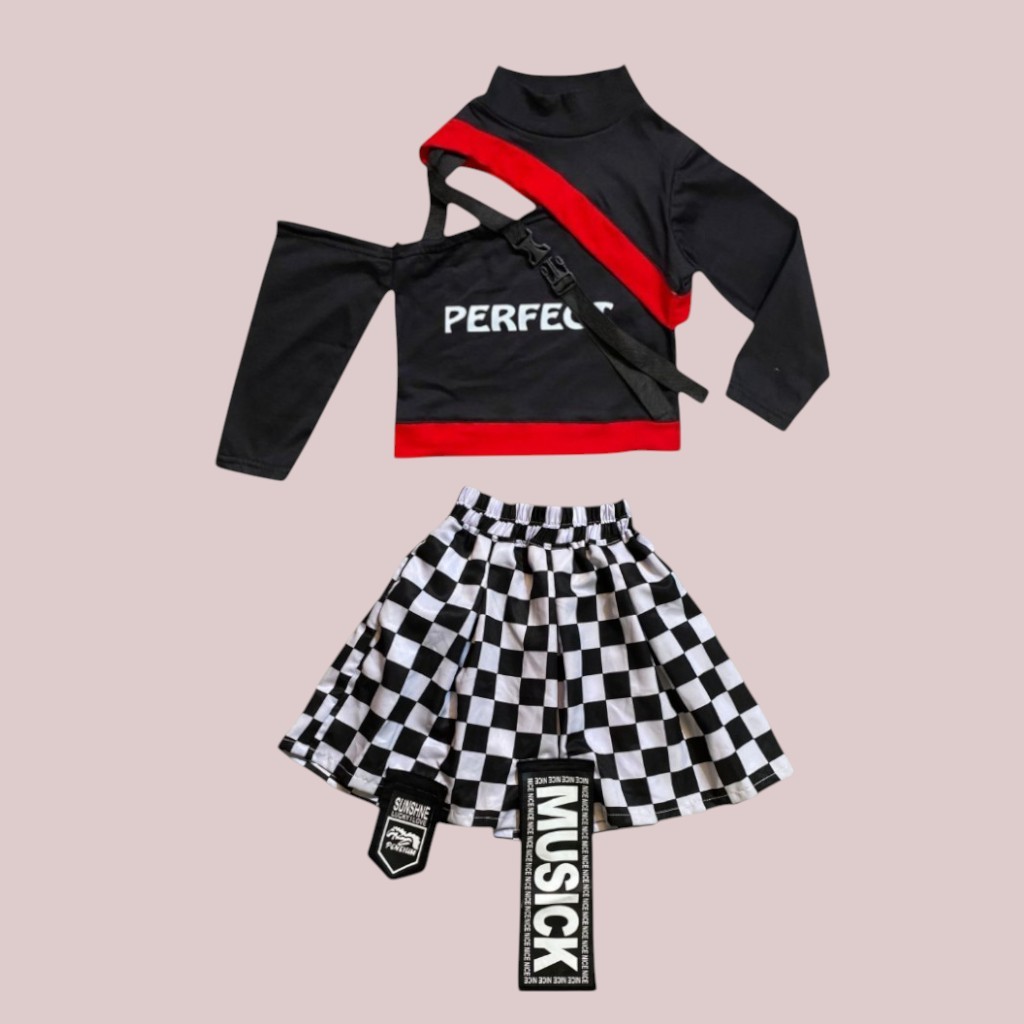 SLVIA set rok kotak-kotak dance anak perempuan hip hop perpect 2 in 1 untuk anak usia 3 sampai 14 tahun