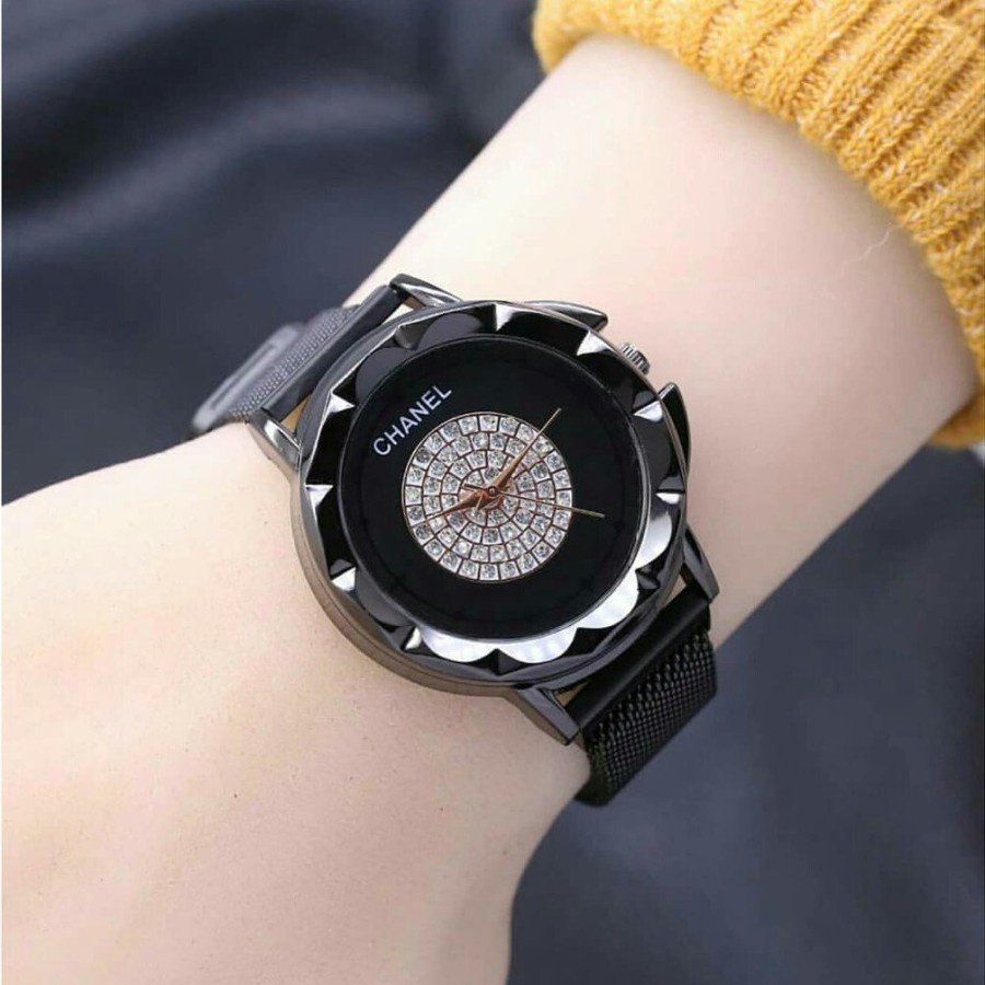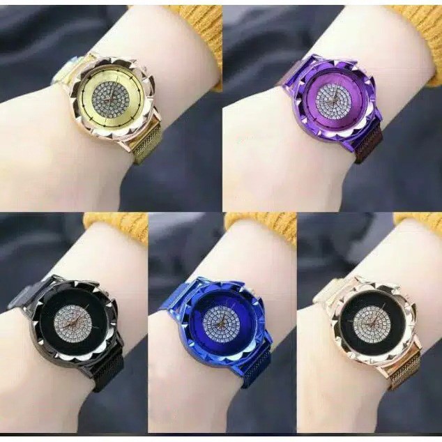 (COD) Jam Tangan Analog dan Digital Stainless dengan Pilihan Wanita Korea Fashion Rantai Pasir Magnet - Elegan dan Terjangkau